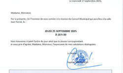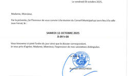 Ordre du jour de la séance du Conseil Municipal du samedi 11 octobre 2025