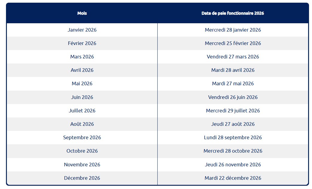 Calendrier de la paye 2026