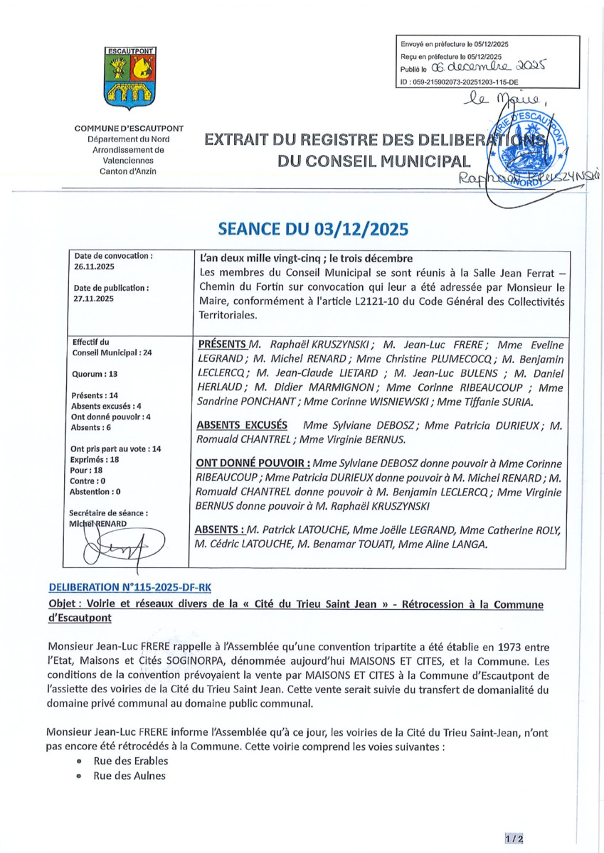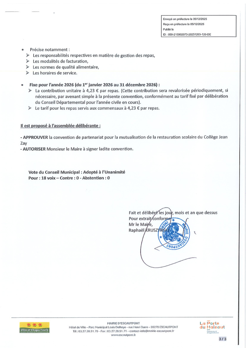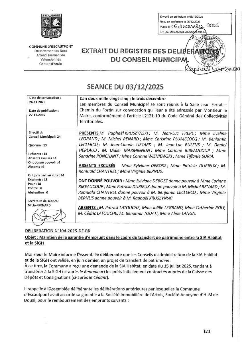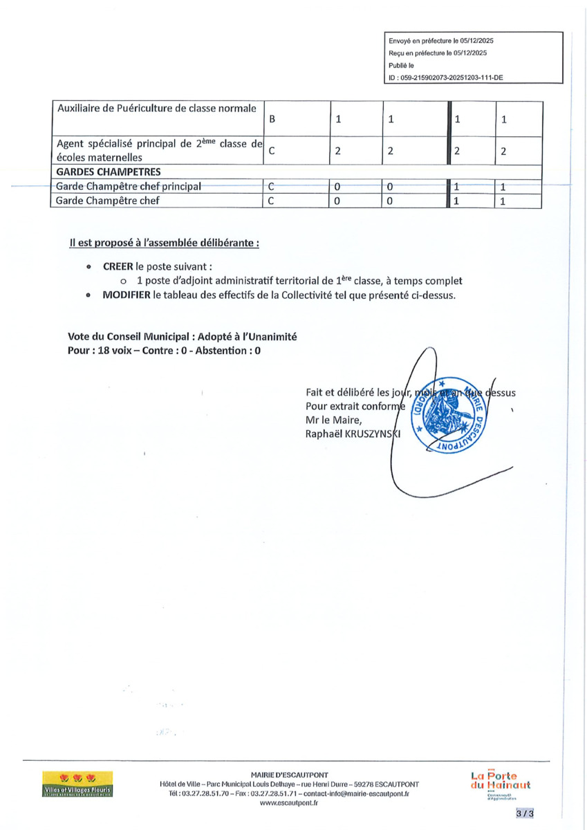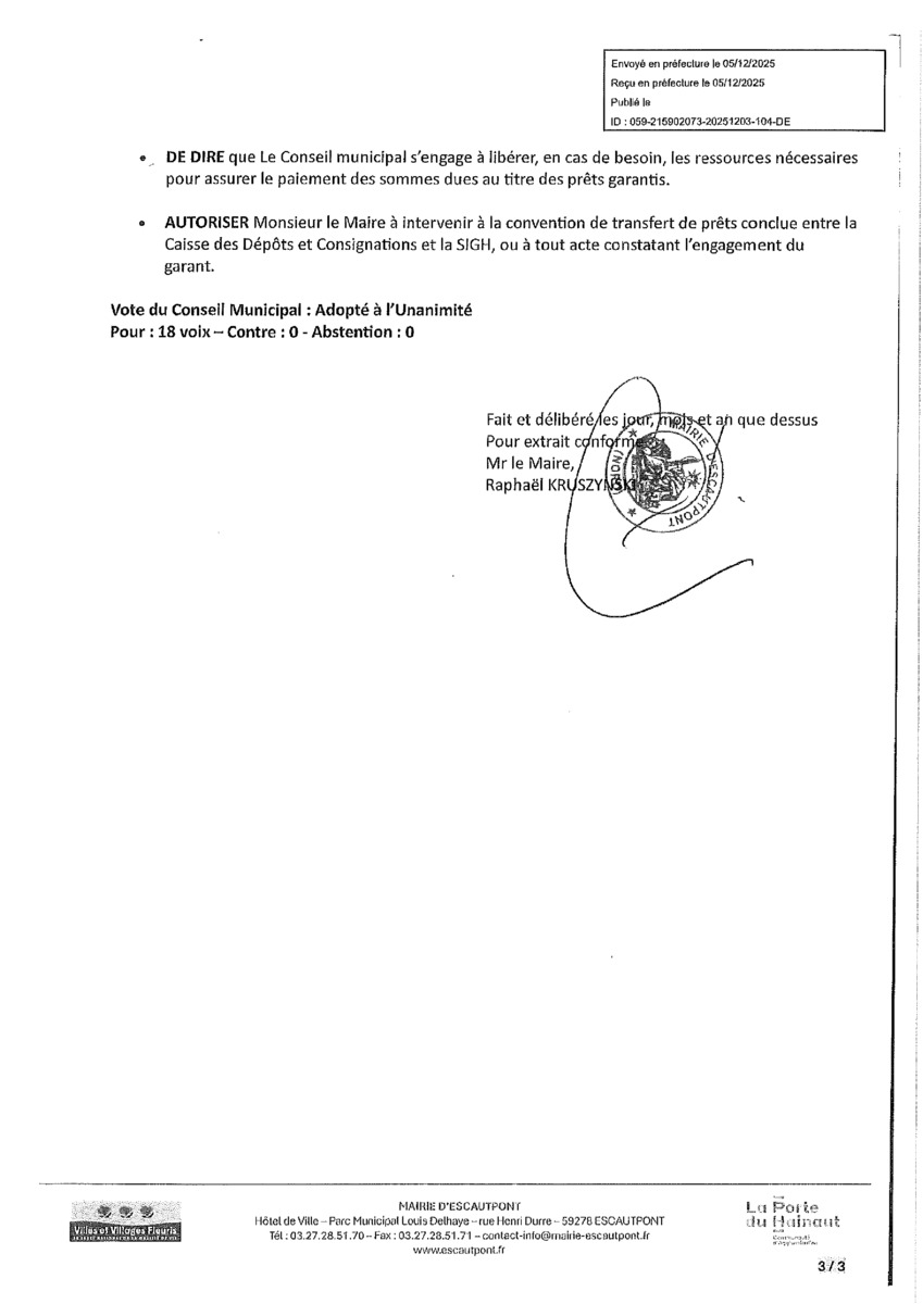 Délibérations du Conseil Municipal du 3 décembre 2025