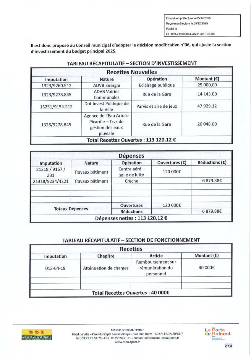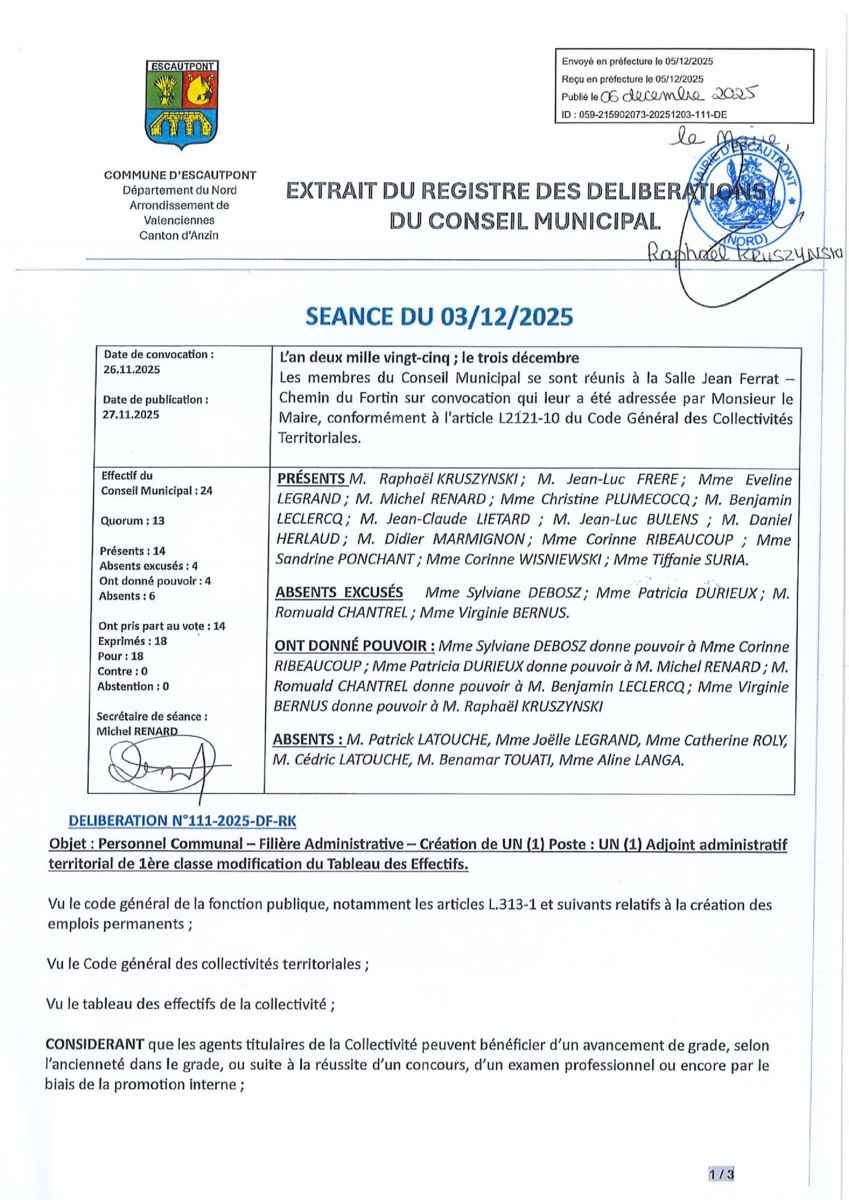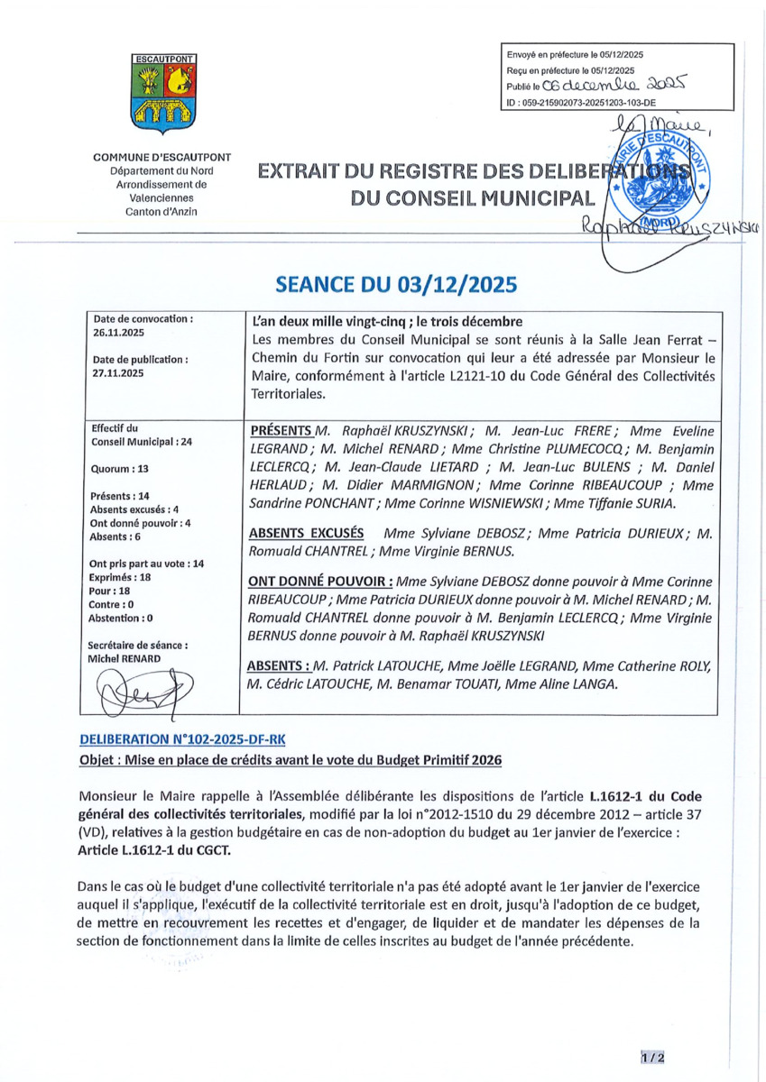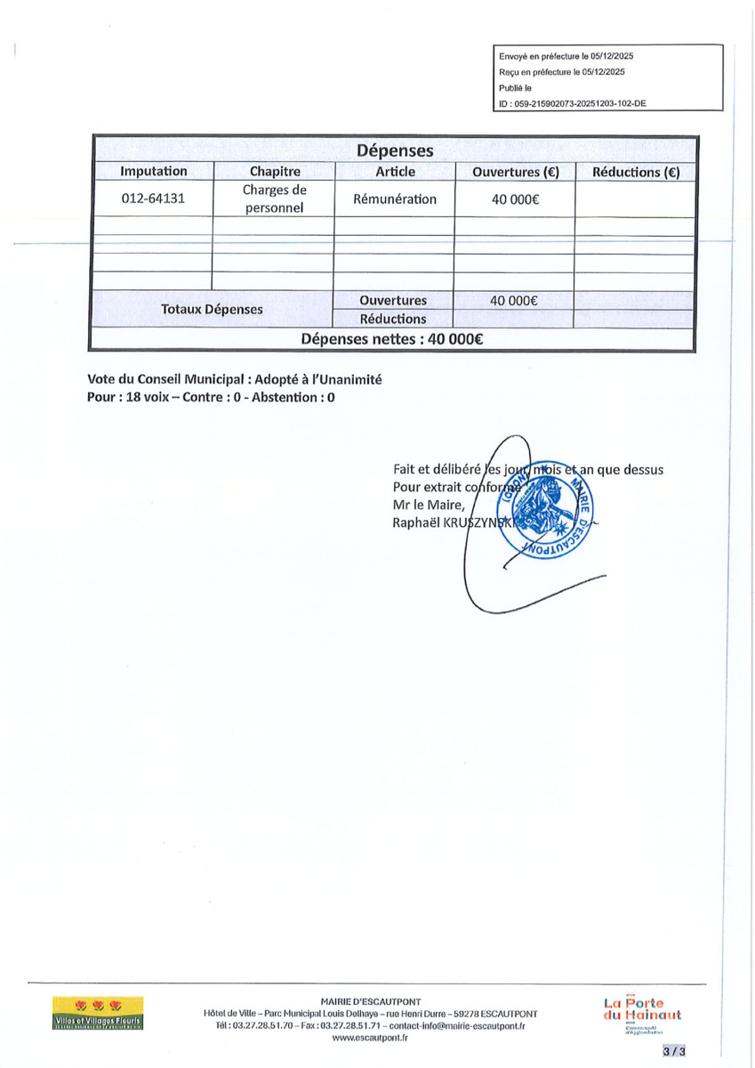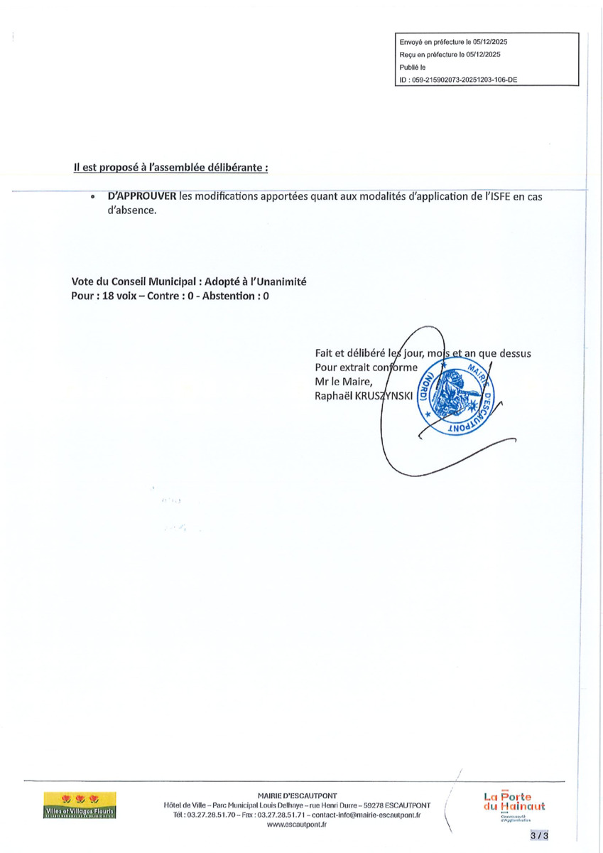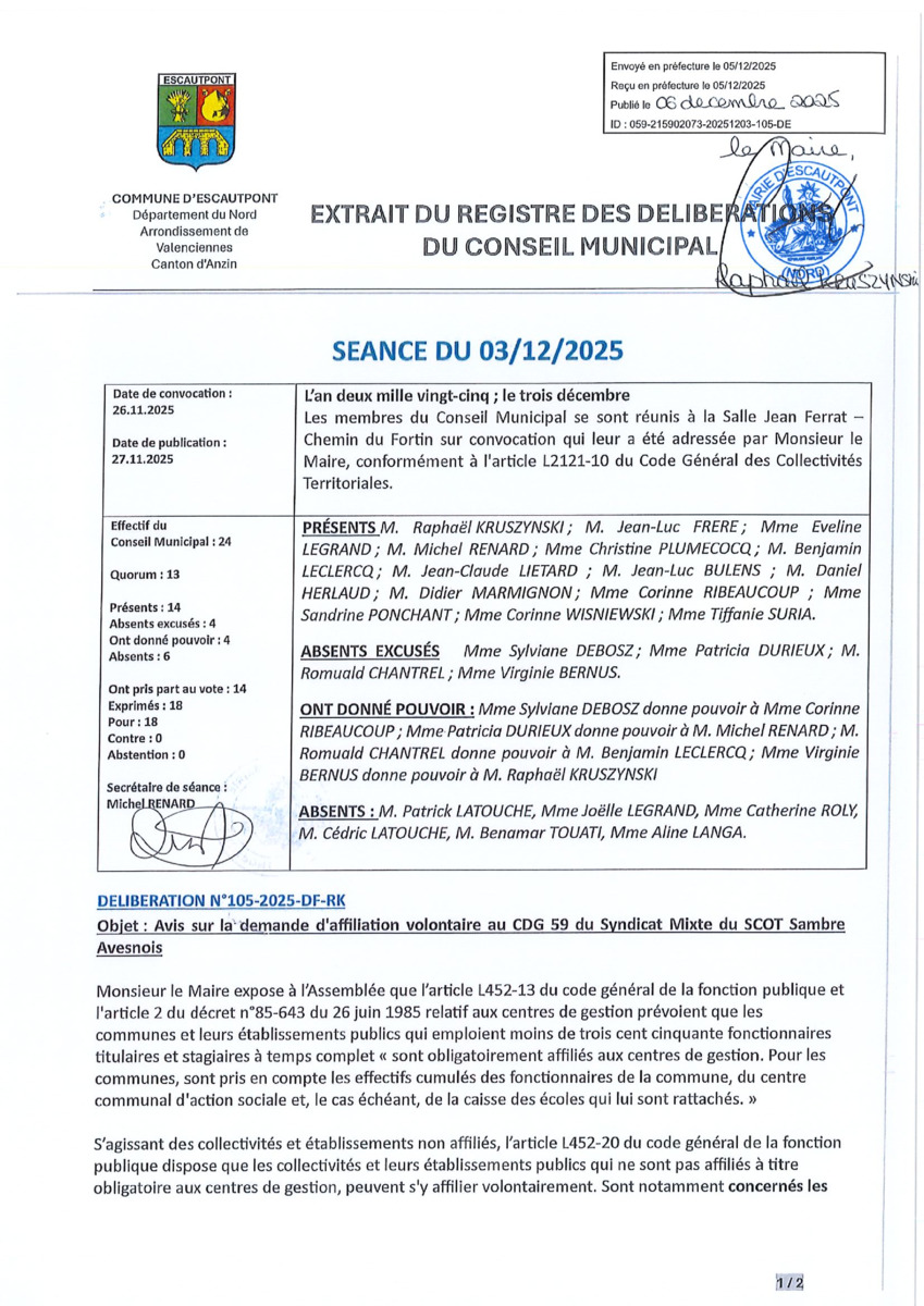 Délibérations du Conseil Municipal du 3 décembre 2025