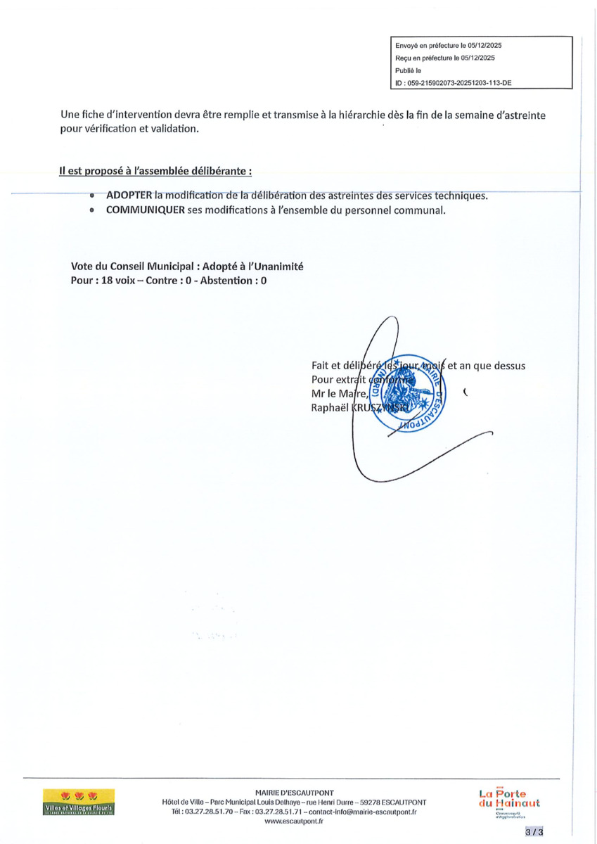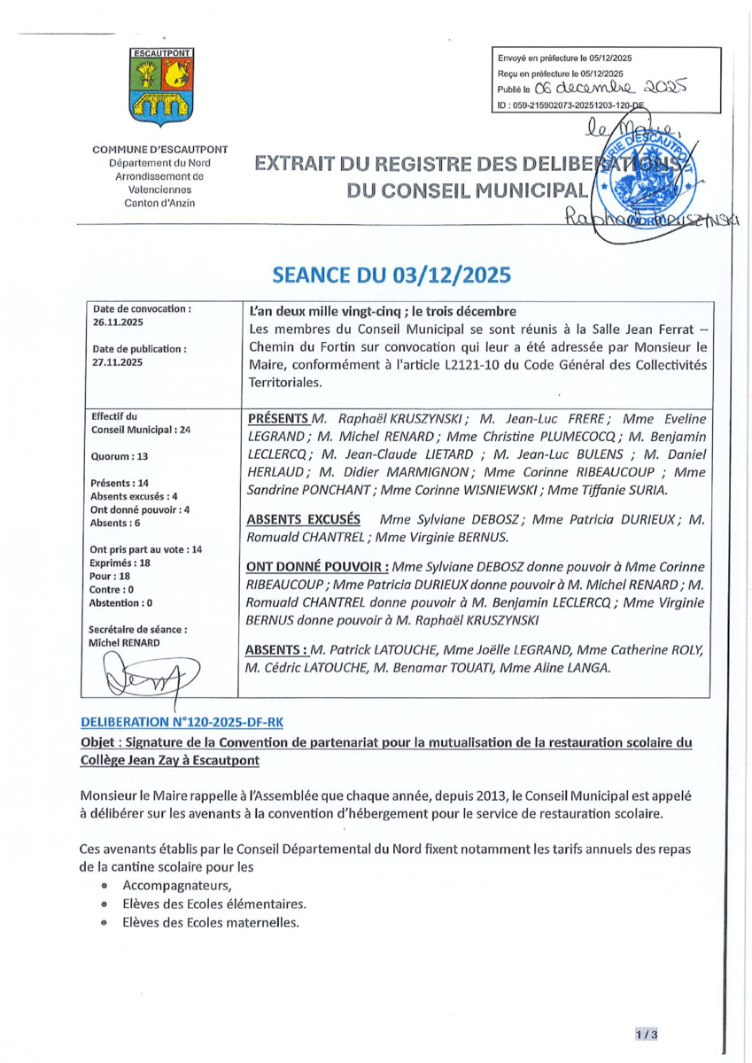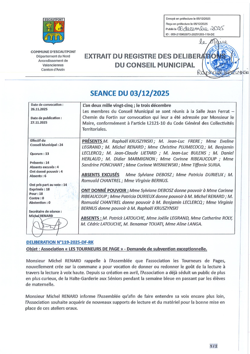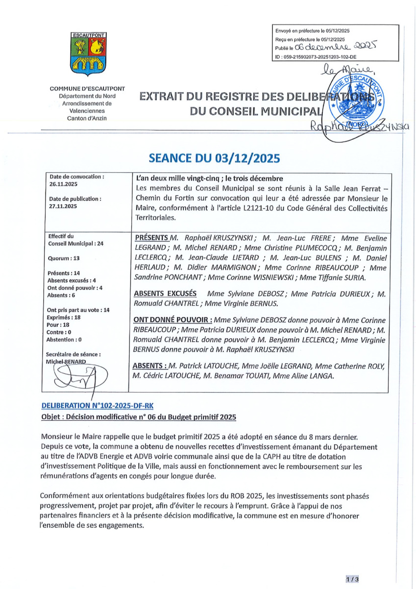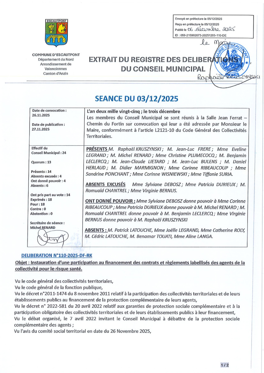 Délibérations du Conseil Municipal du 3 décembre 2025