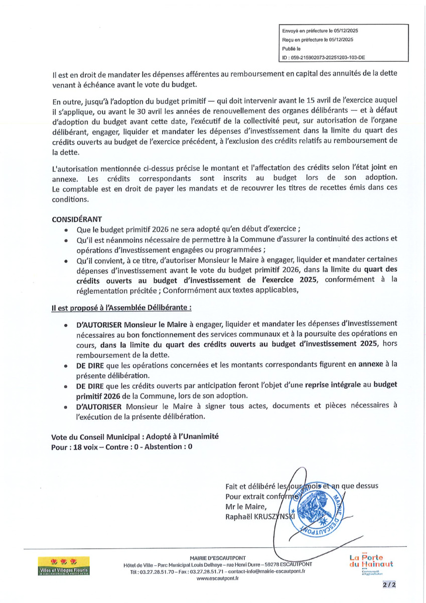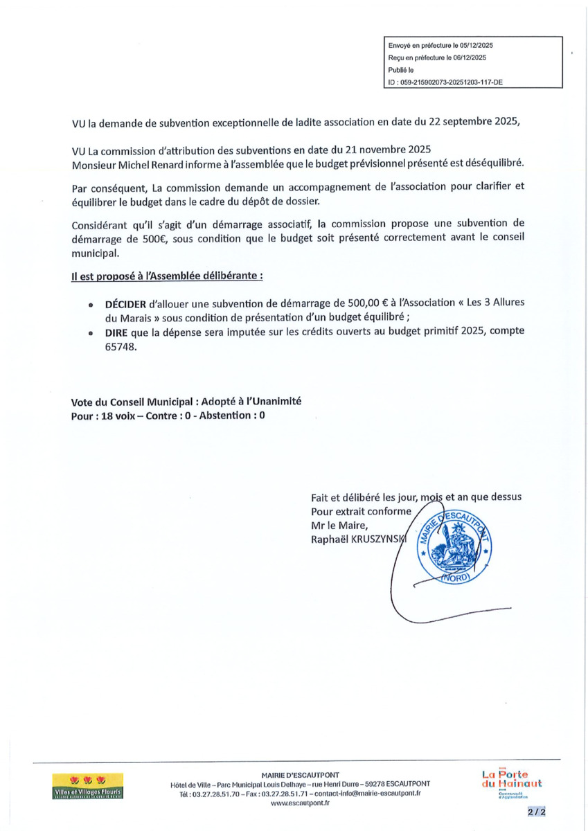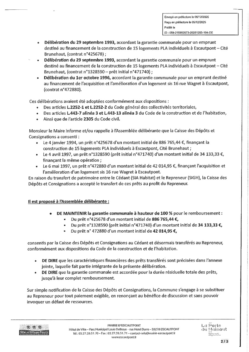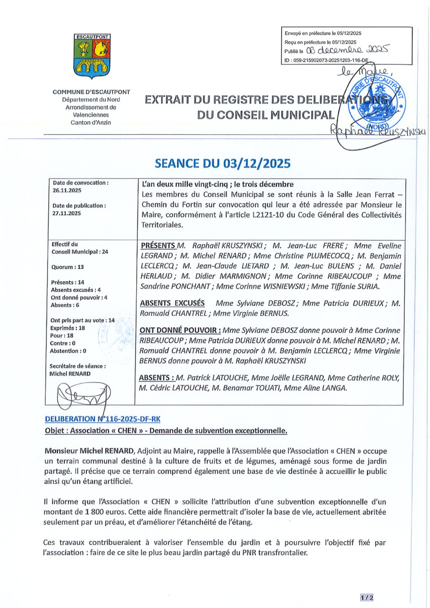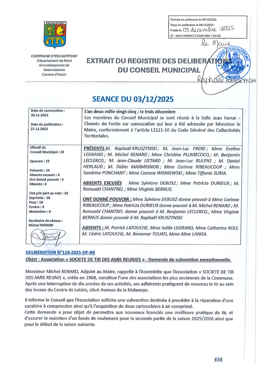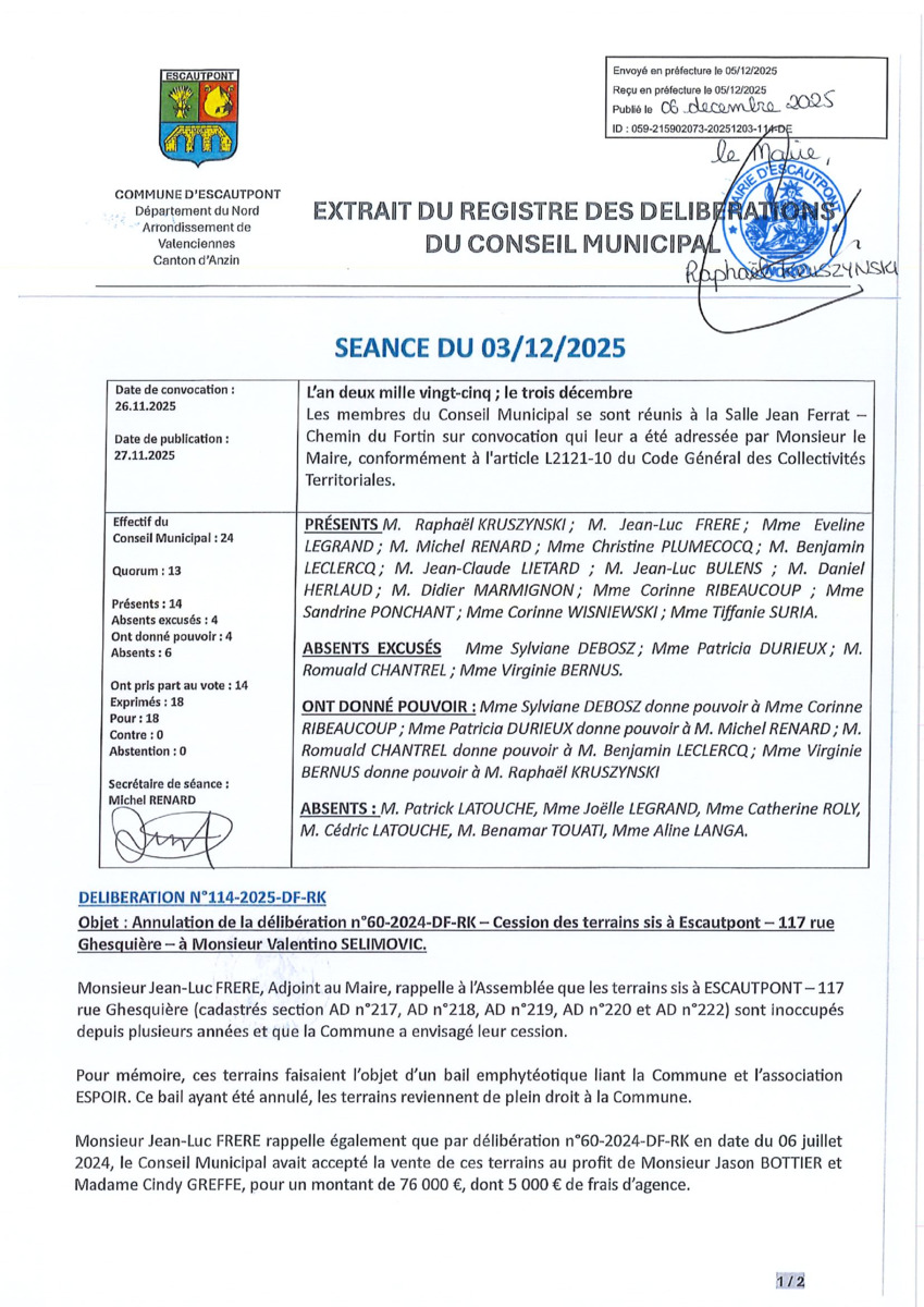 Délibérations du Conseil Municipal du 3 décembre 2025