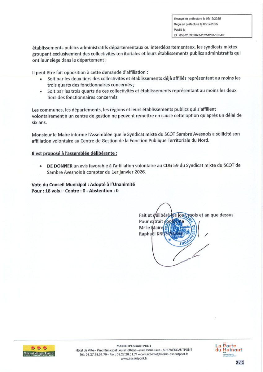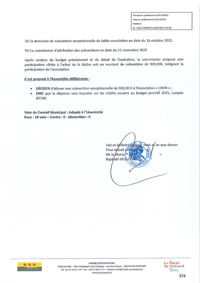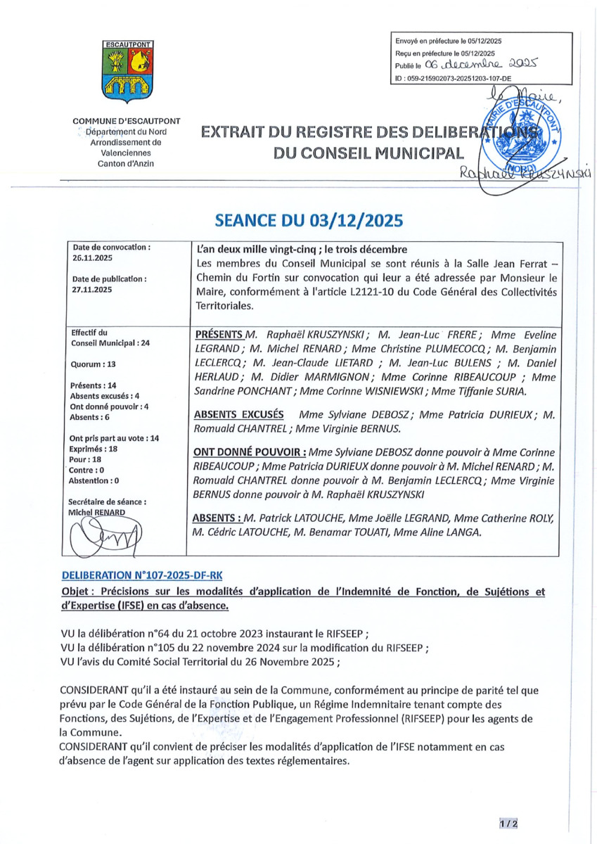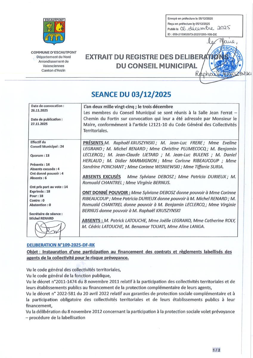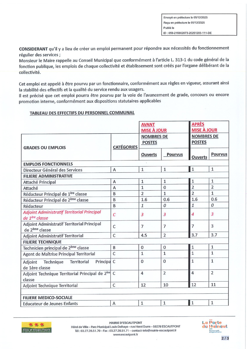 Délibérations du Conseil Municipal du 3 décembre 2025