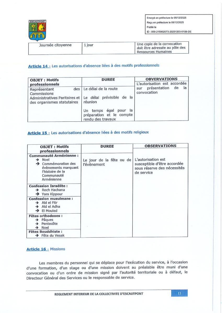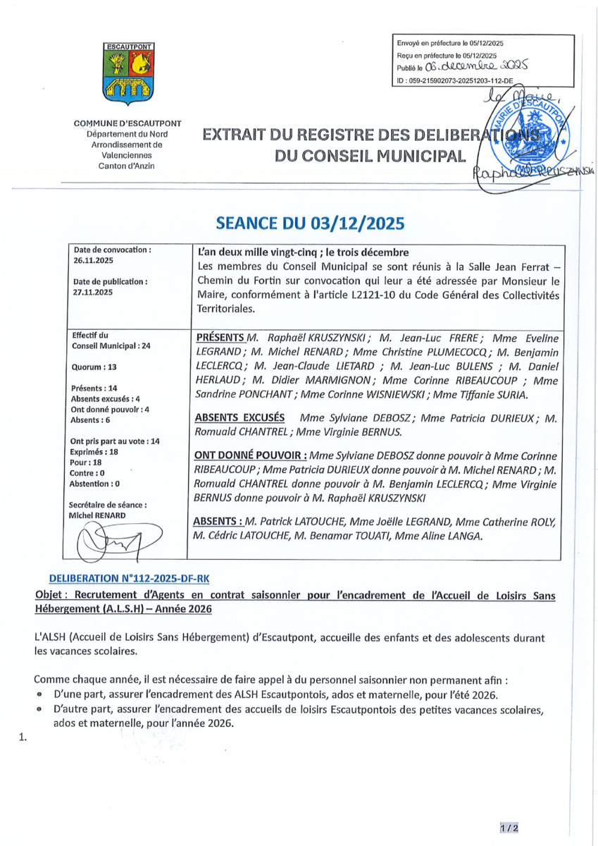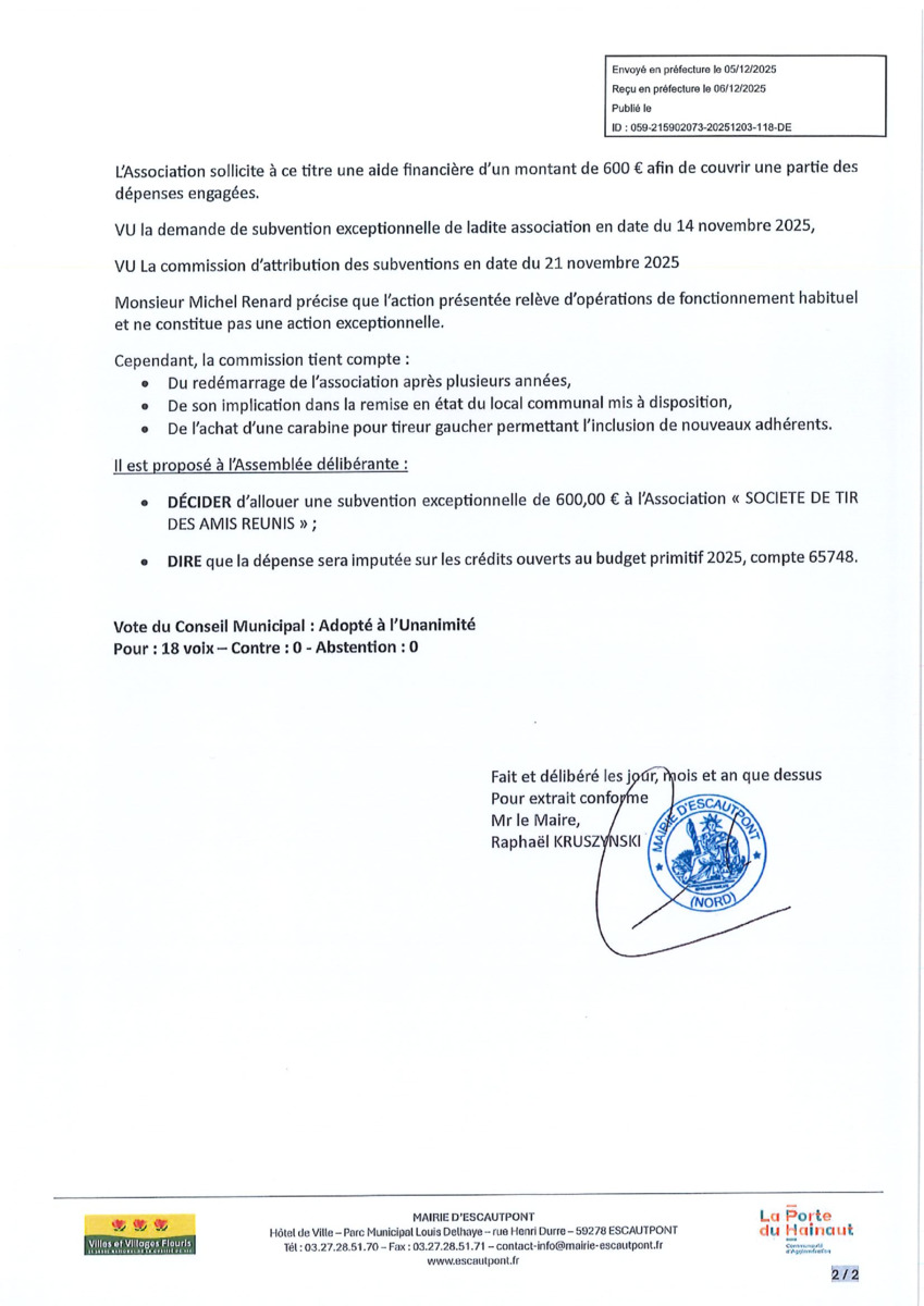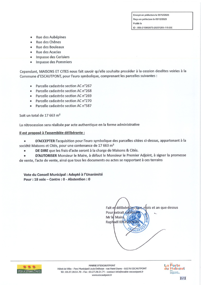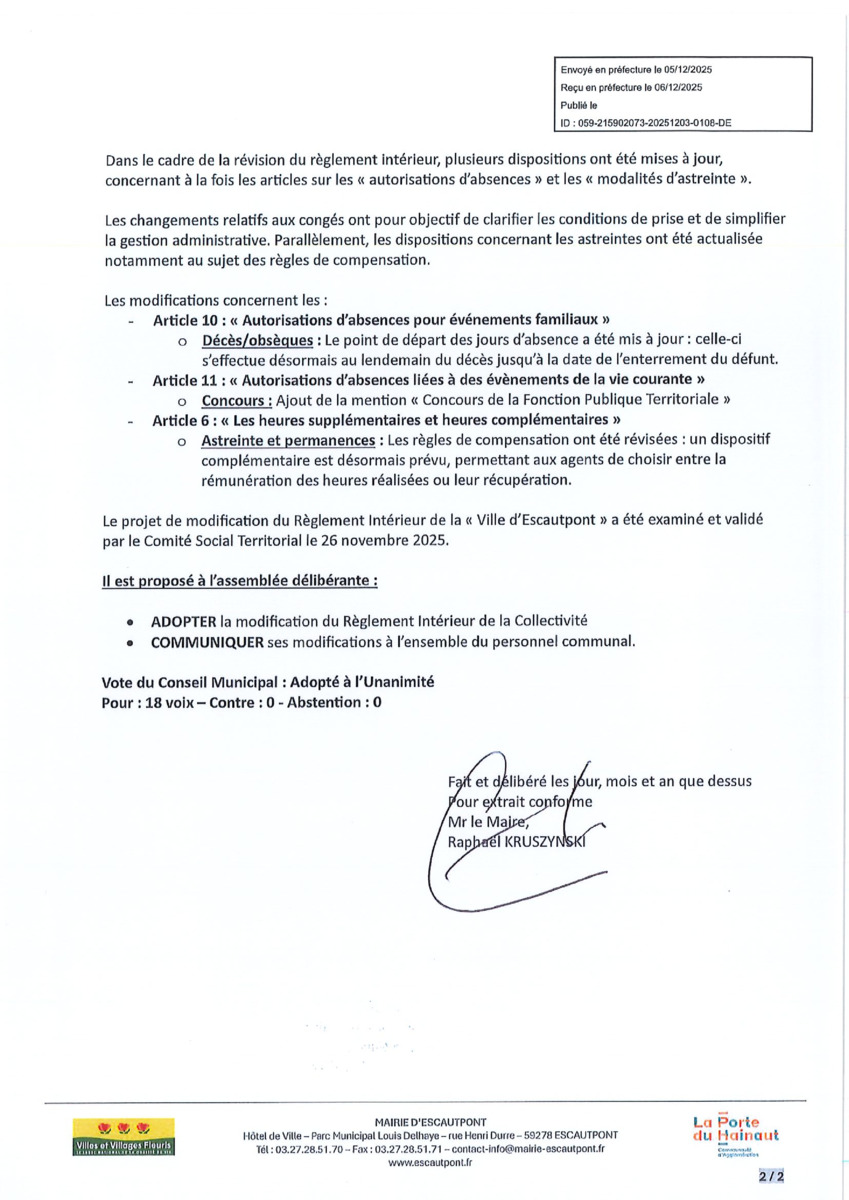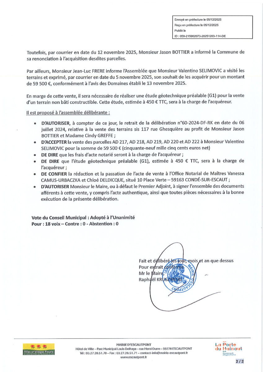 Délibérations du Conseil Municipal du 3 décembre 2025