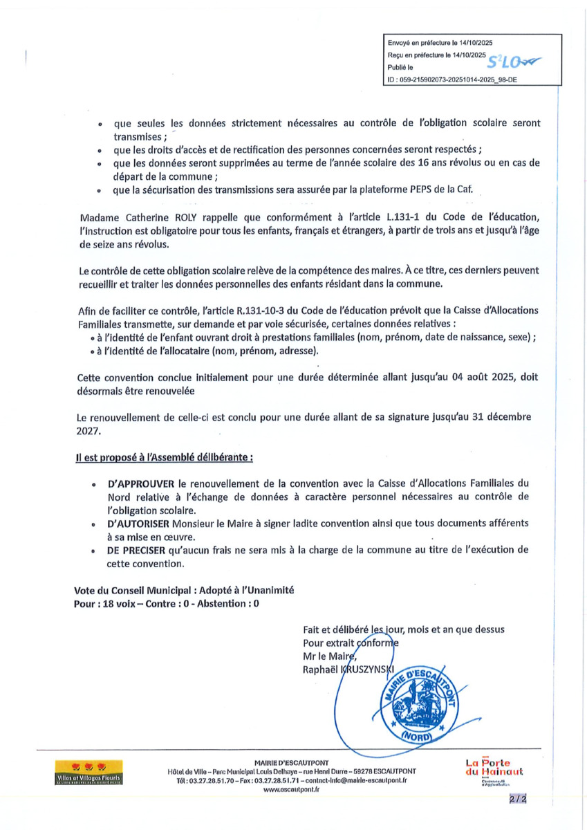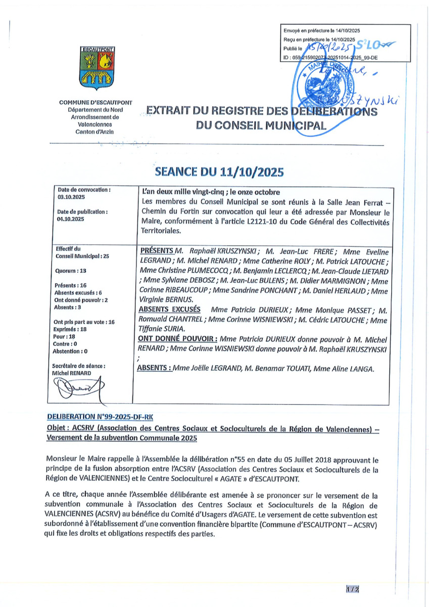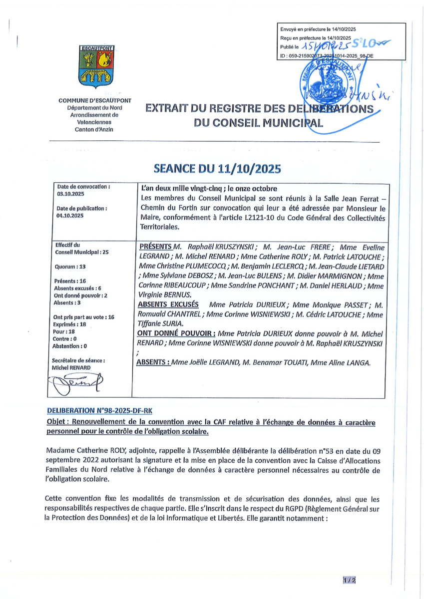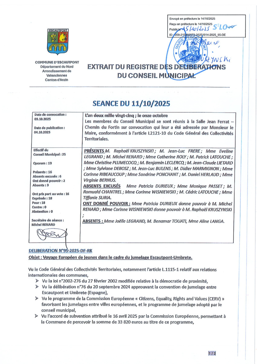 Conseil Municipal du 11 octobre 2025