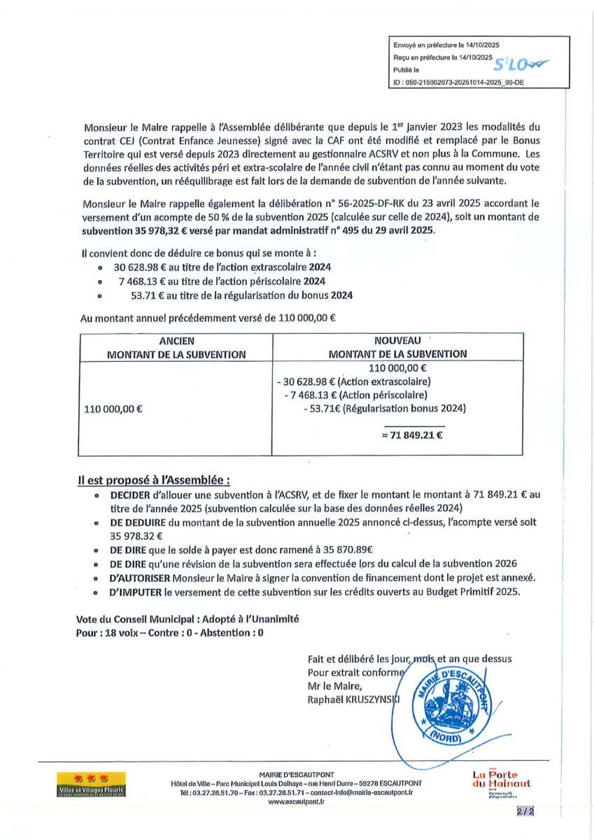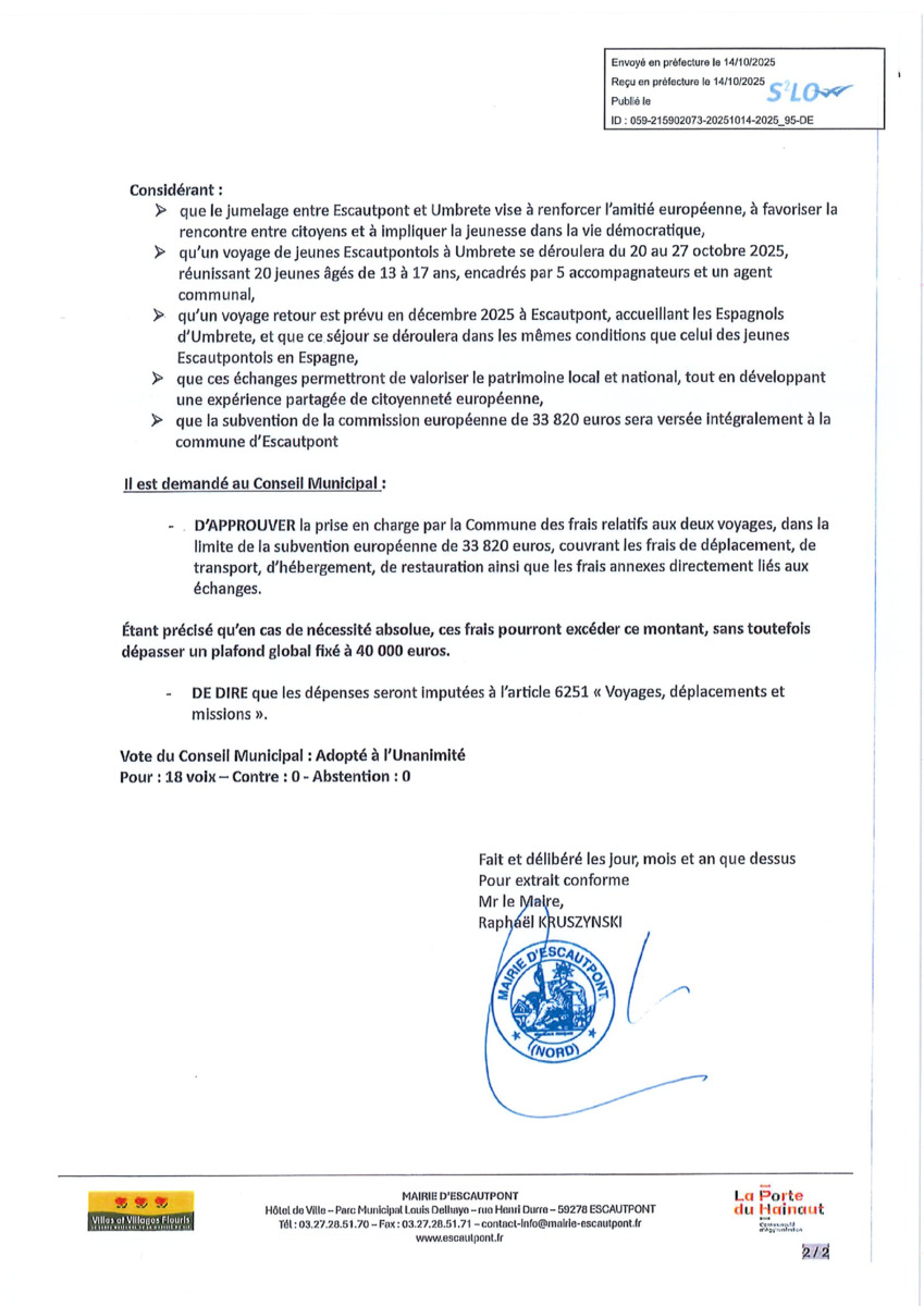 Délibérations du Conseil Municipal du 11 octobre 2025
