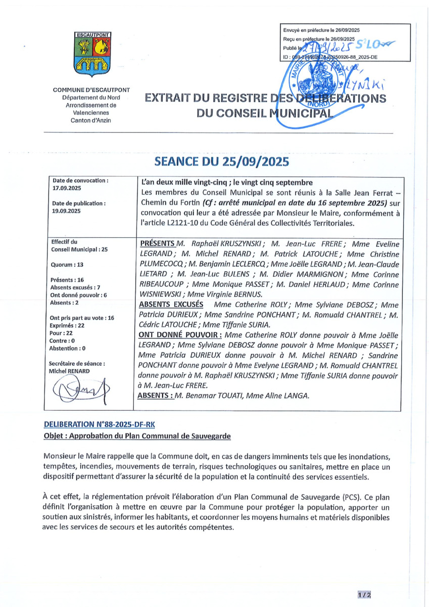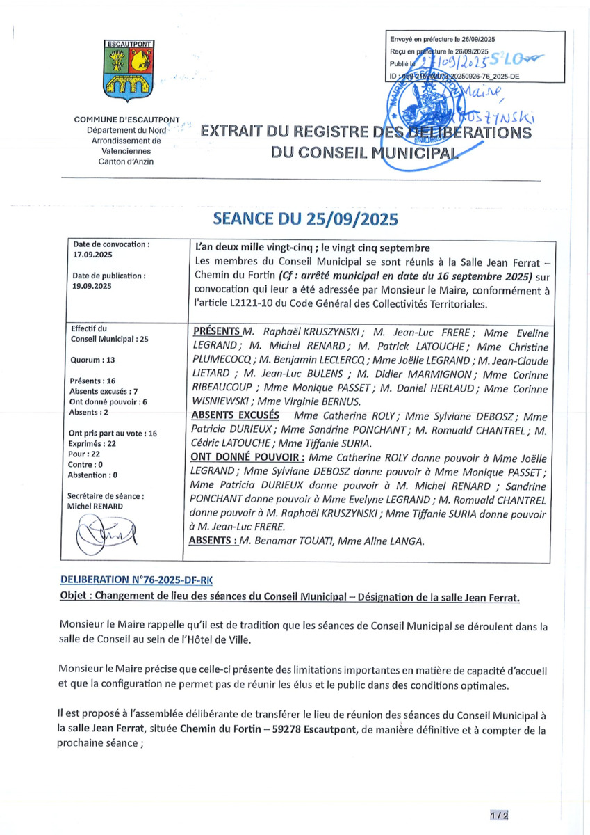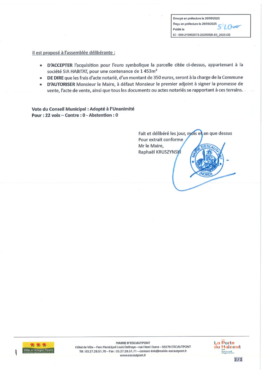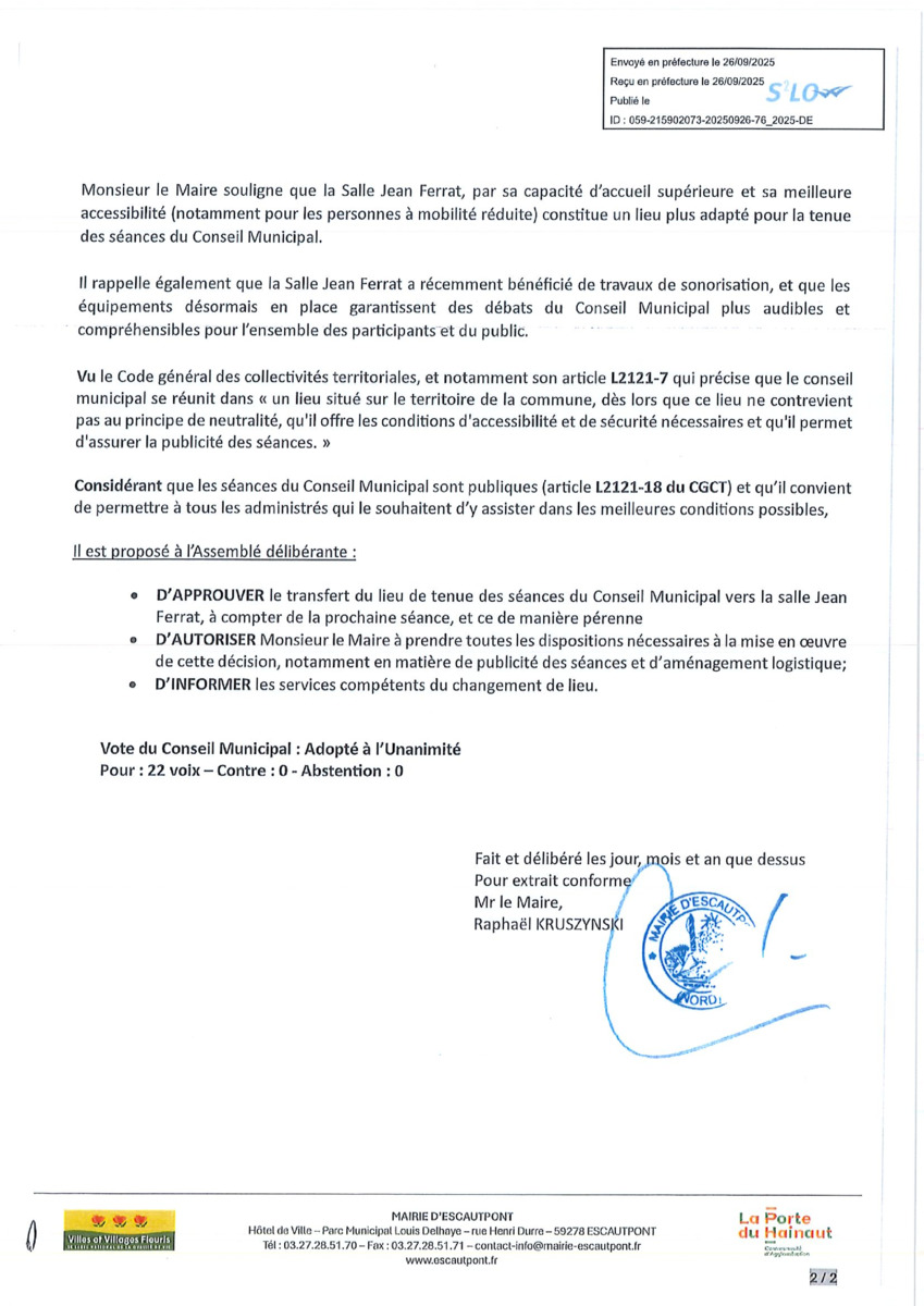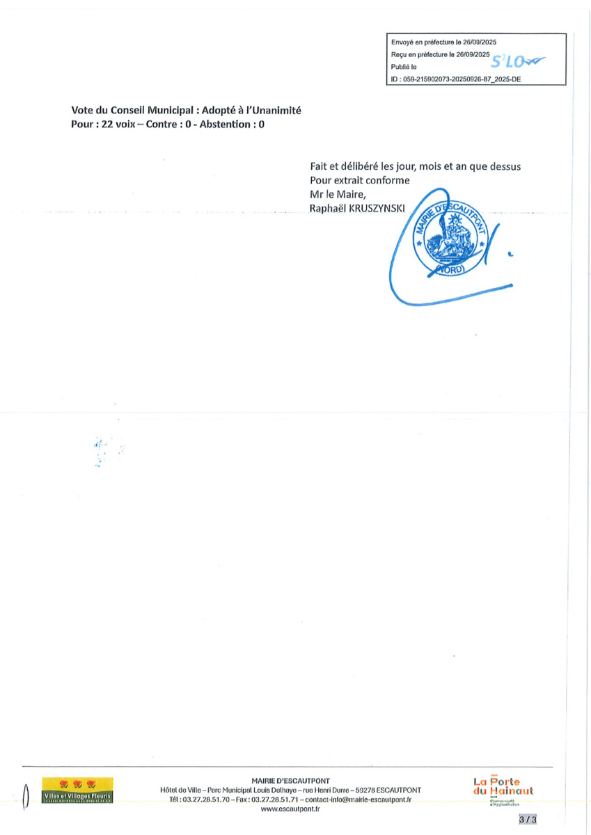 Délibérations du Conseil Municipal du 25 septembre 2025