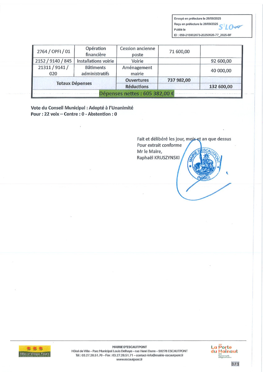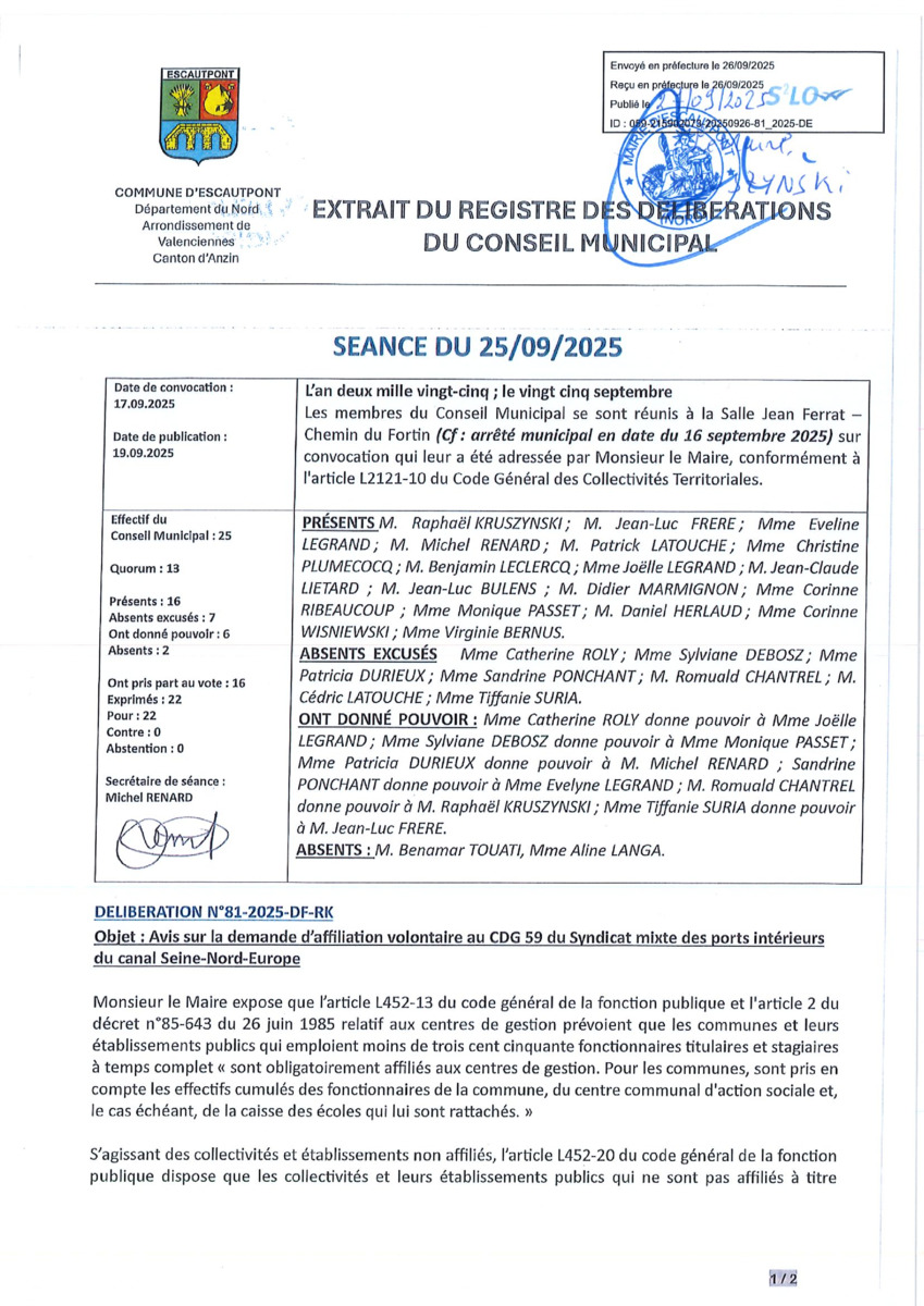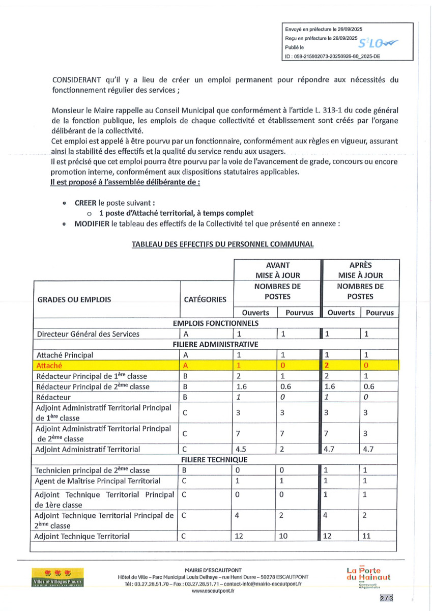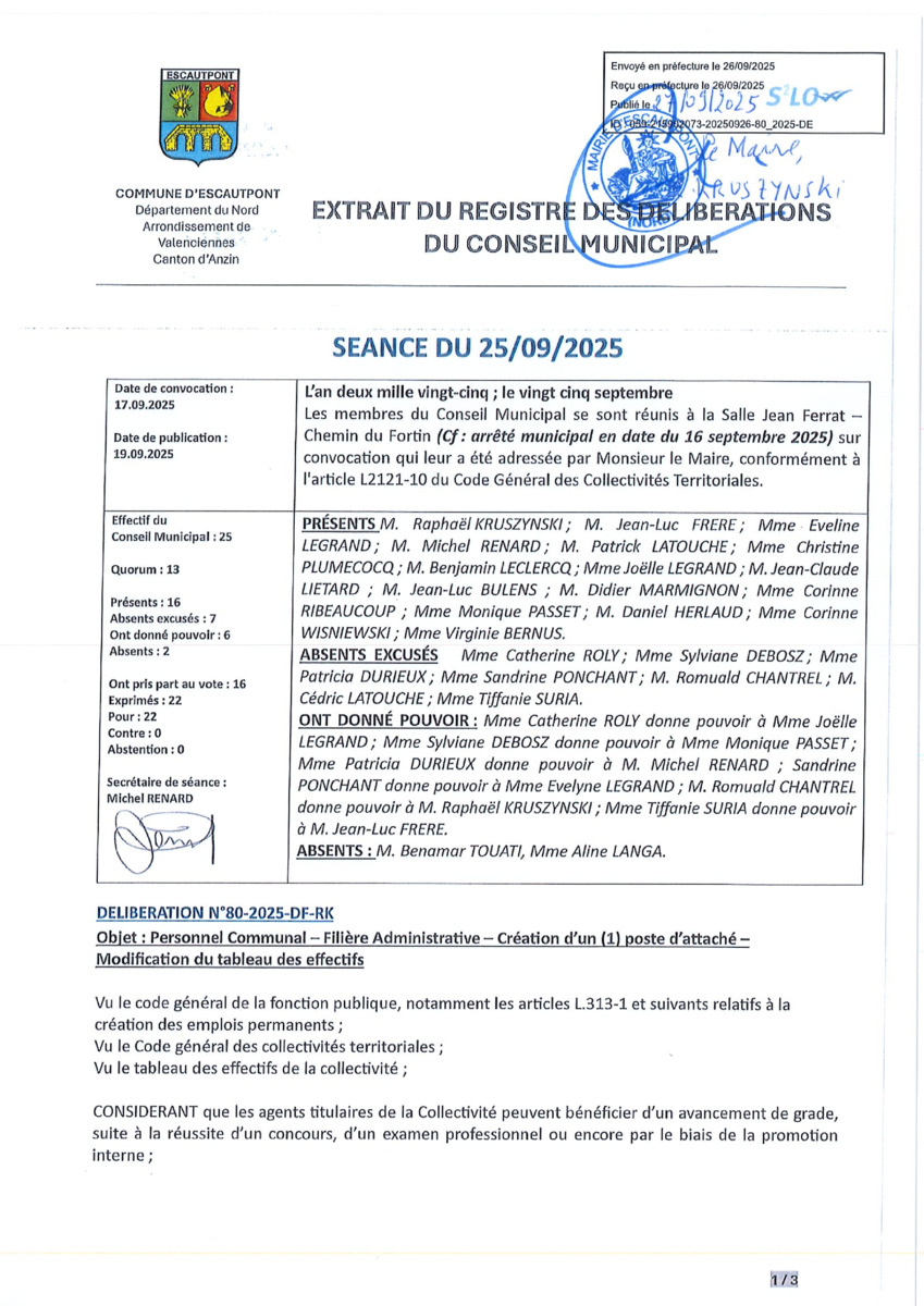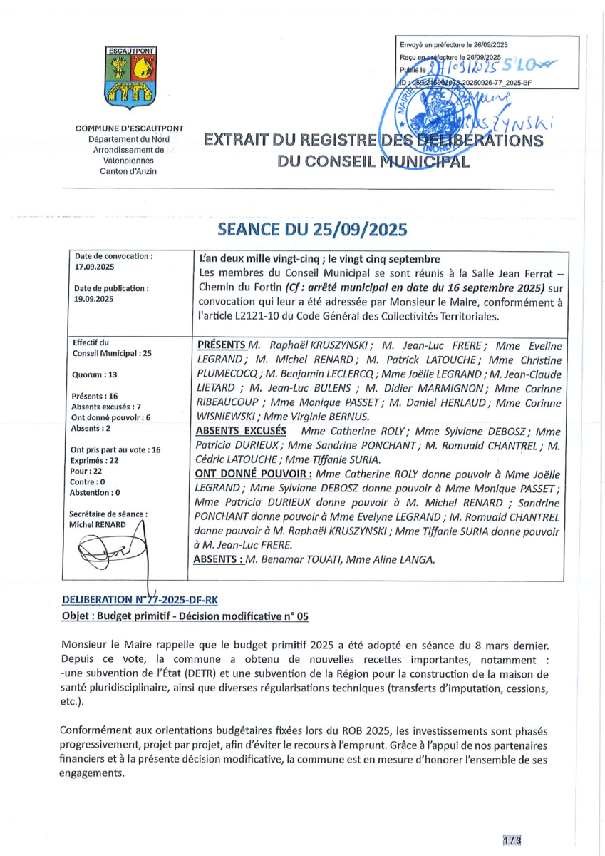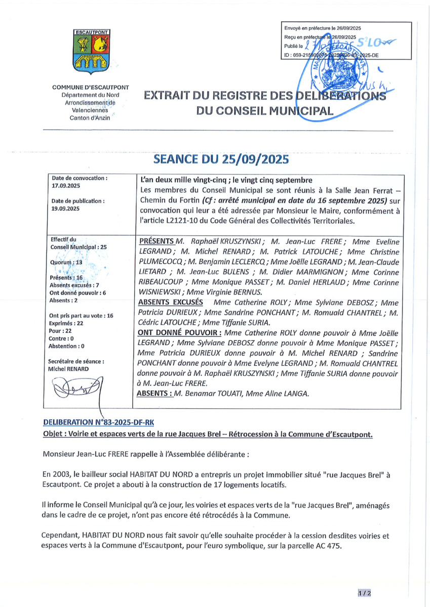 Délibérations du Conseil Municipal du 25 septembre 2025