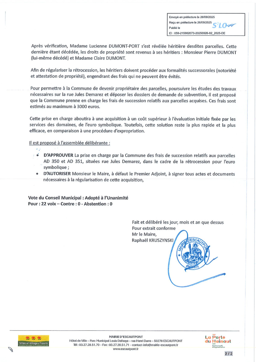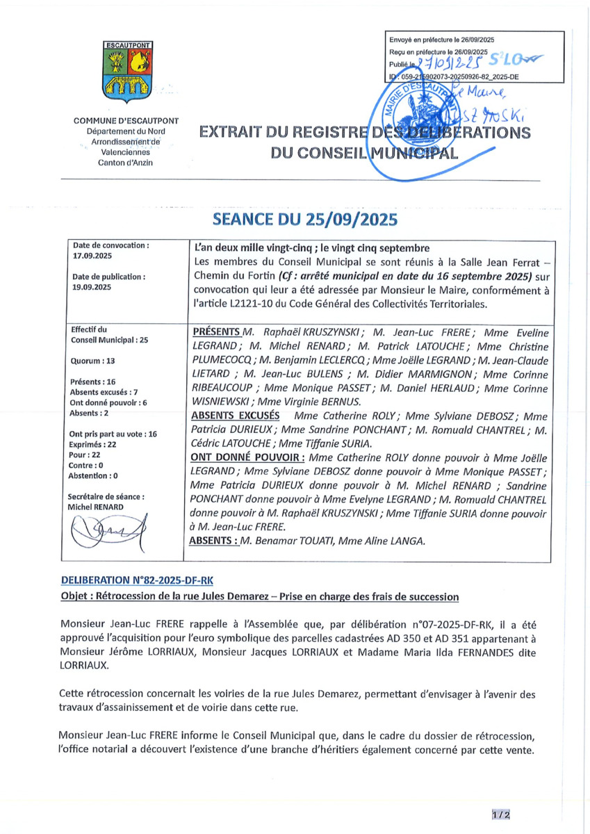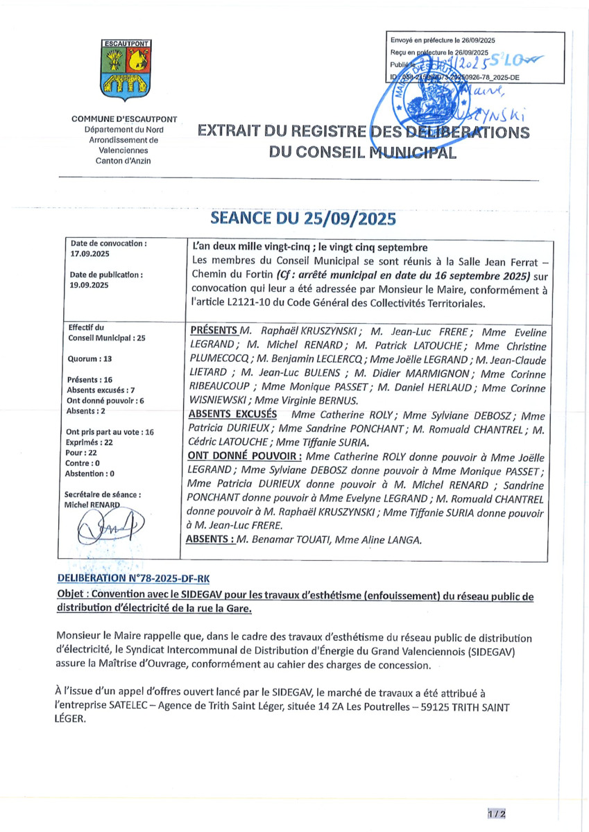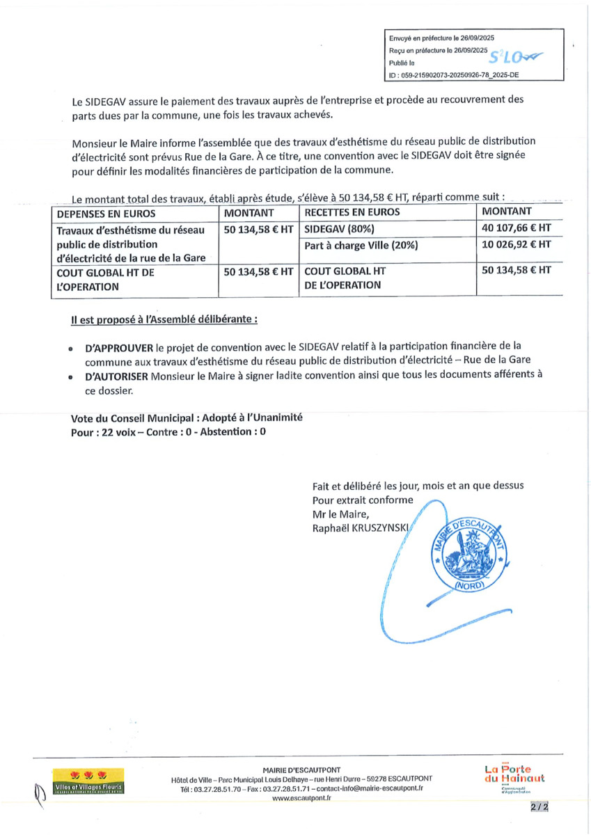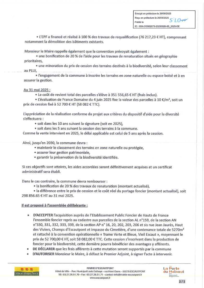 Délibérations du Conseil Municipal du 25 septembre 2025