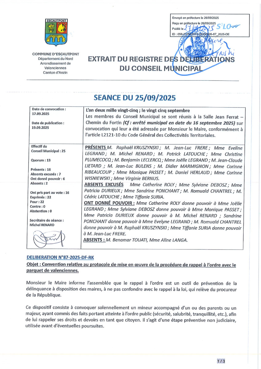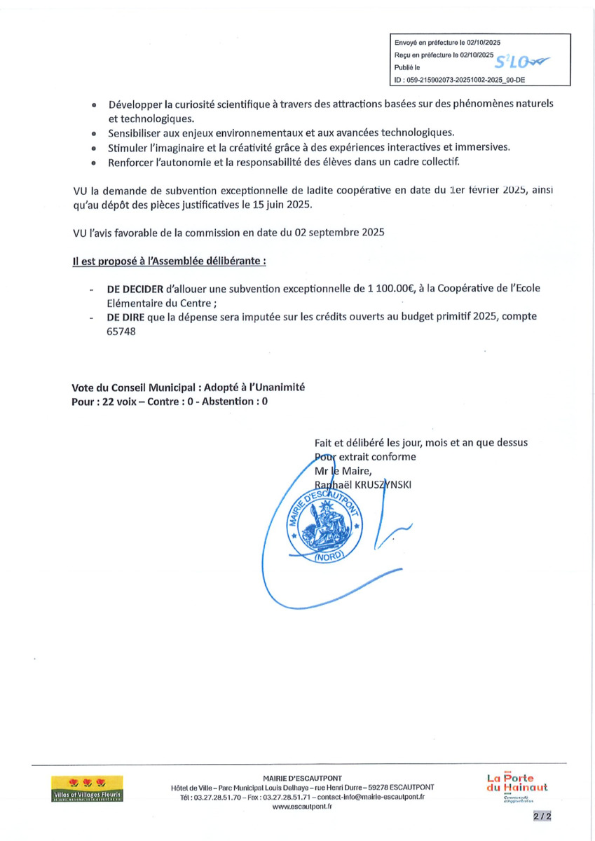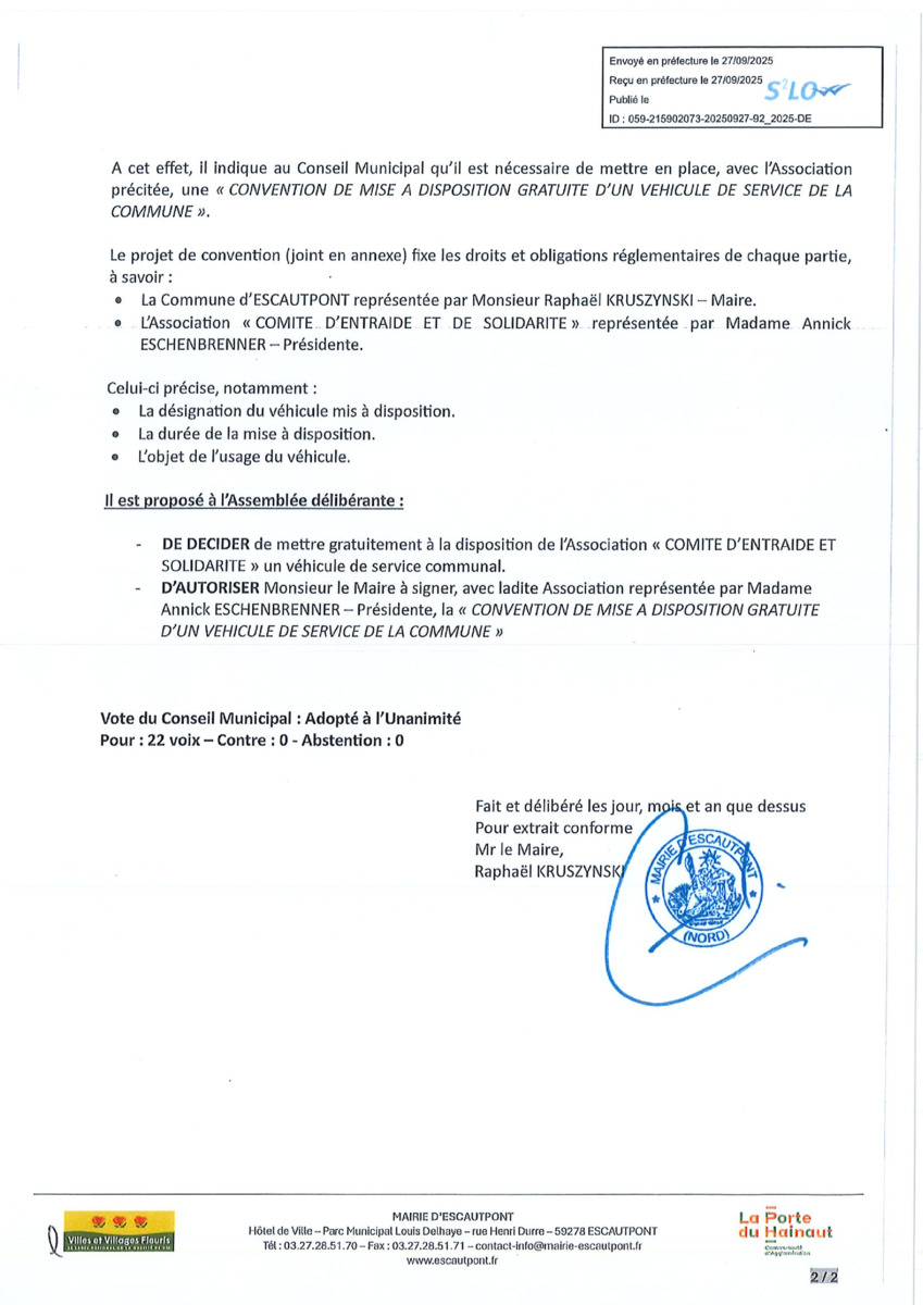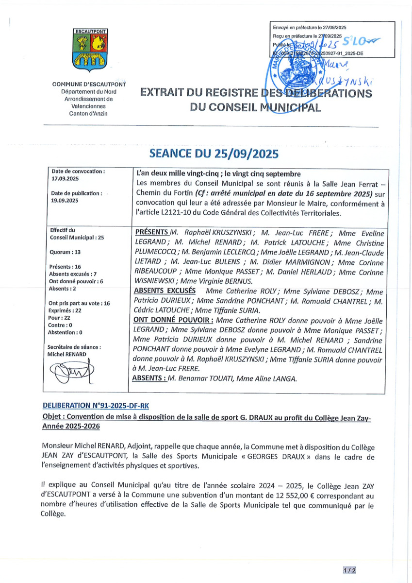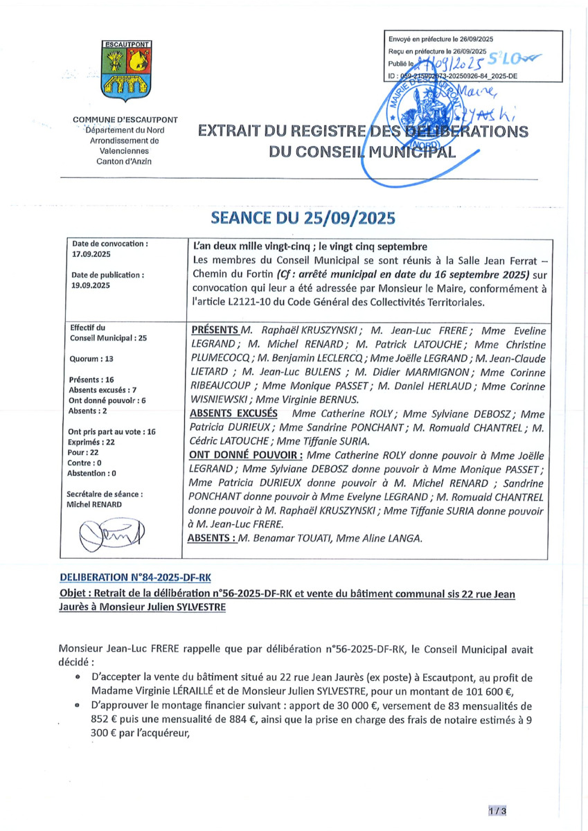 Délibérations du Conseil Municipal du 25 septembre 2025