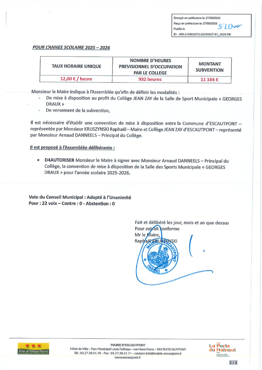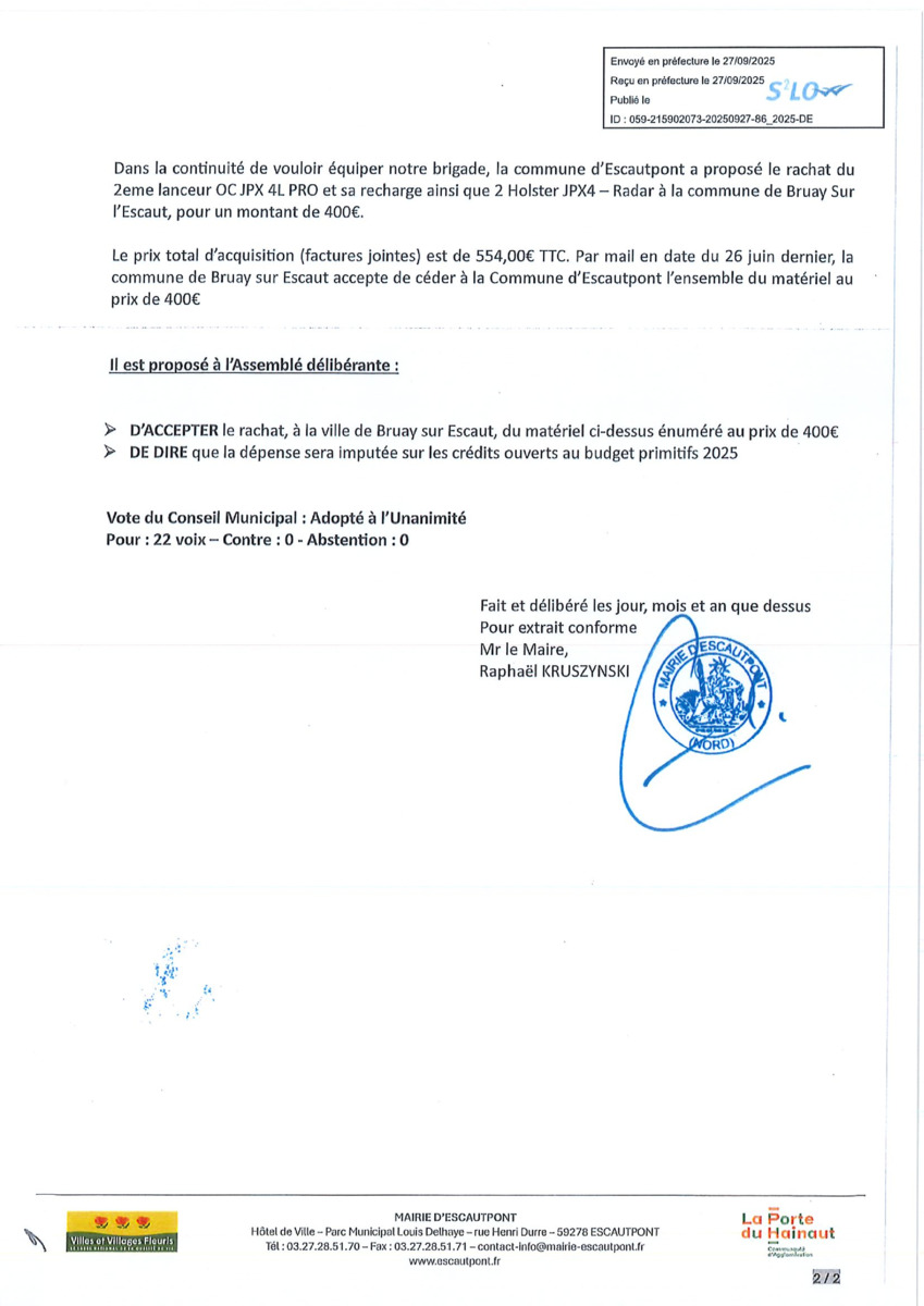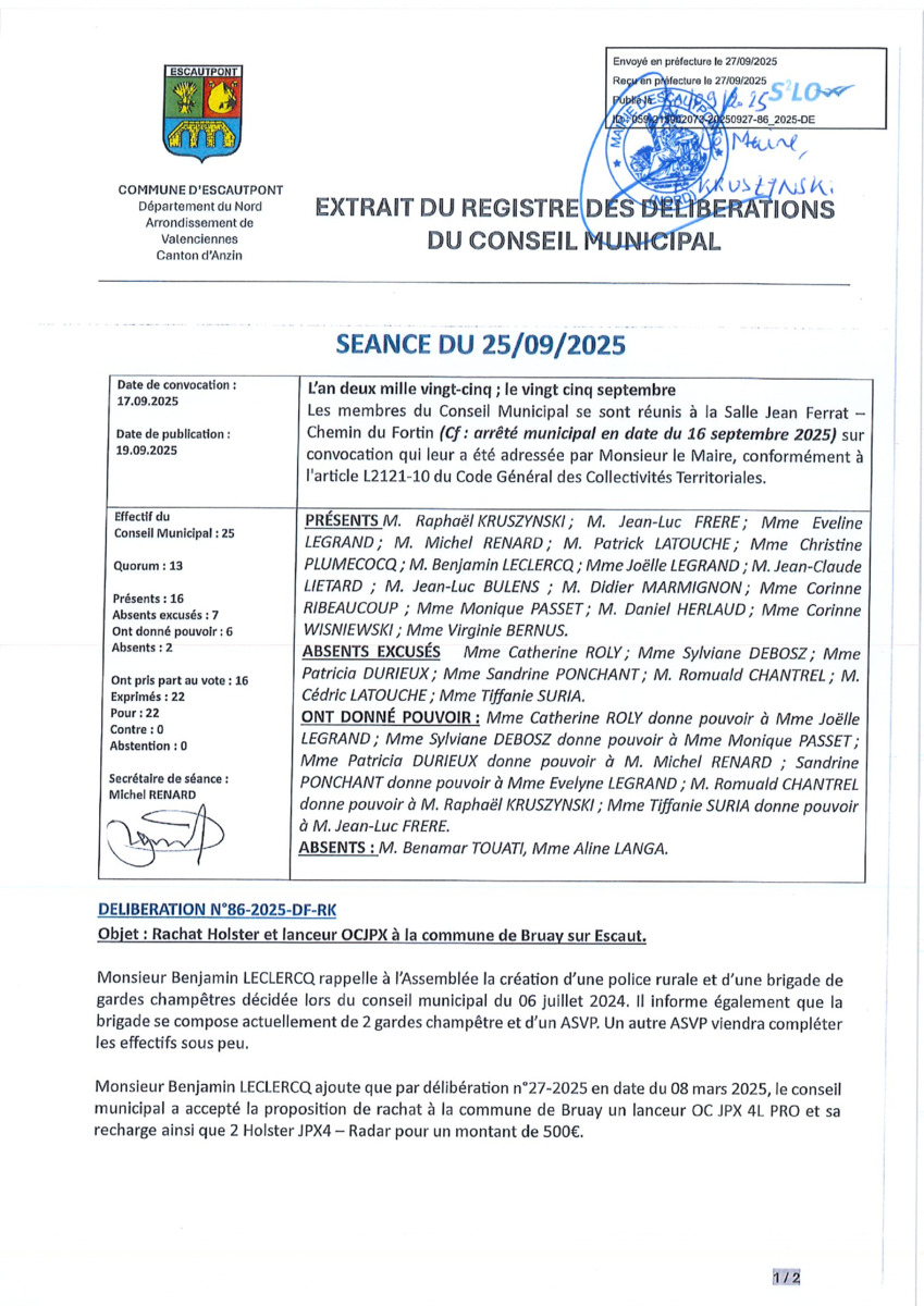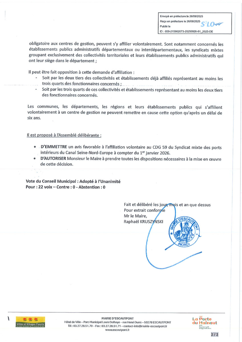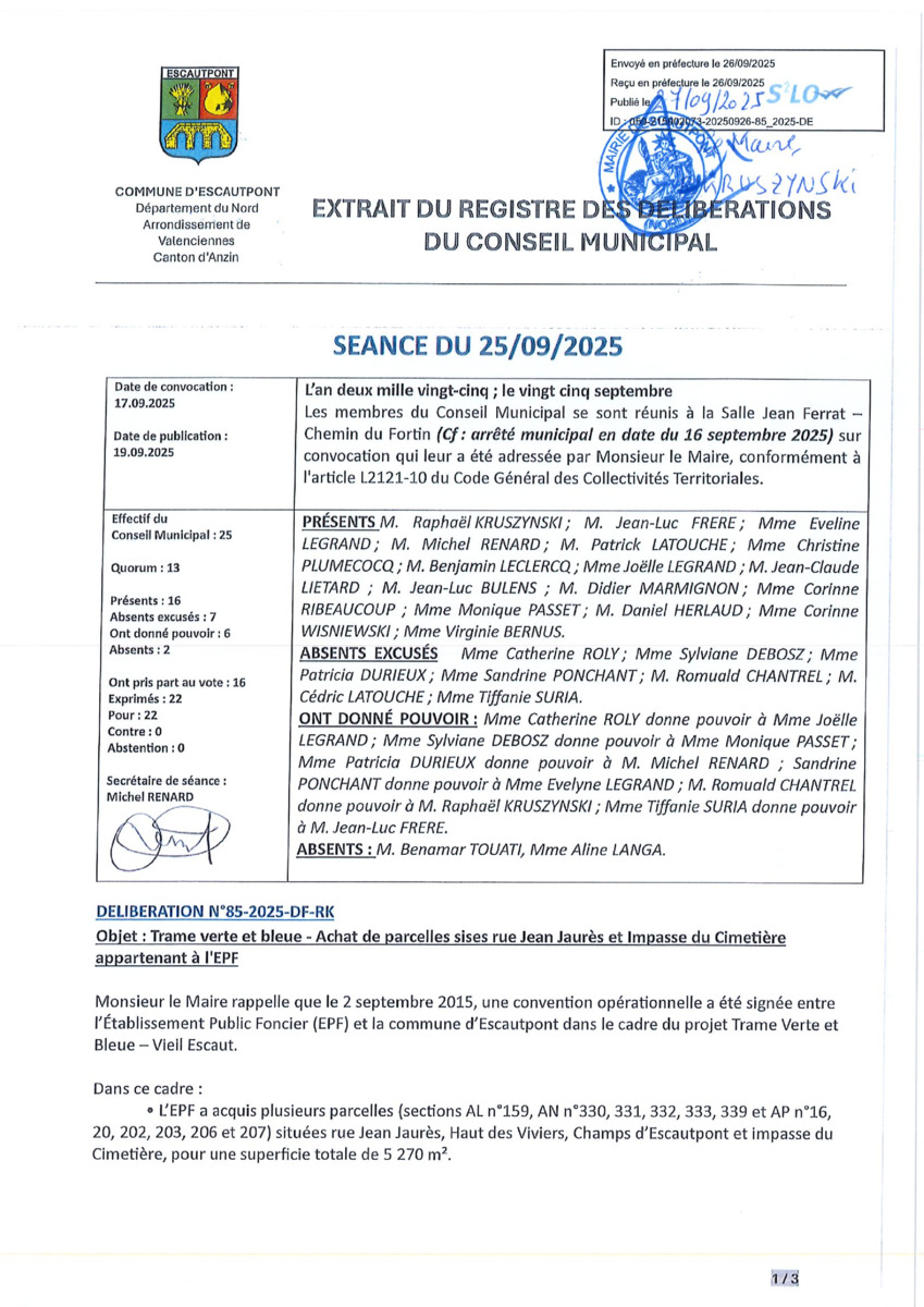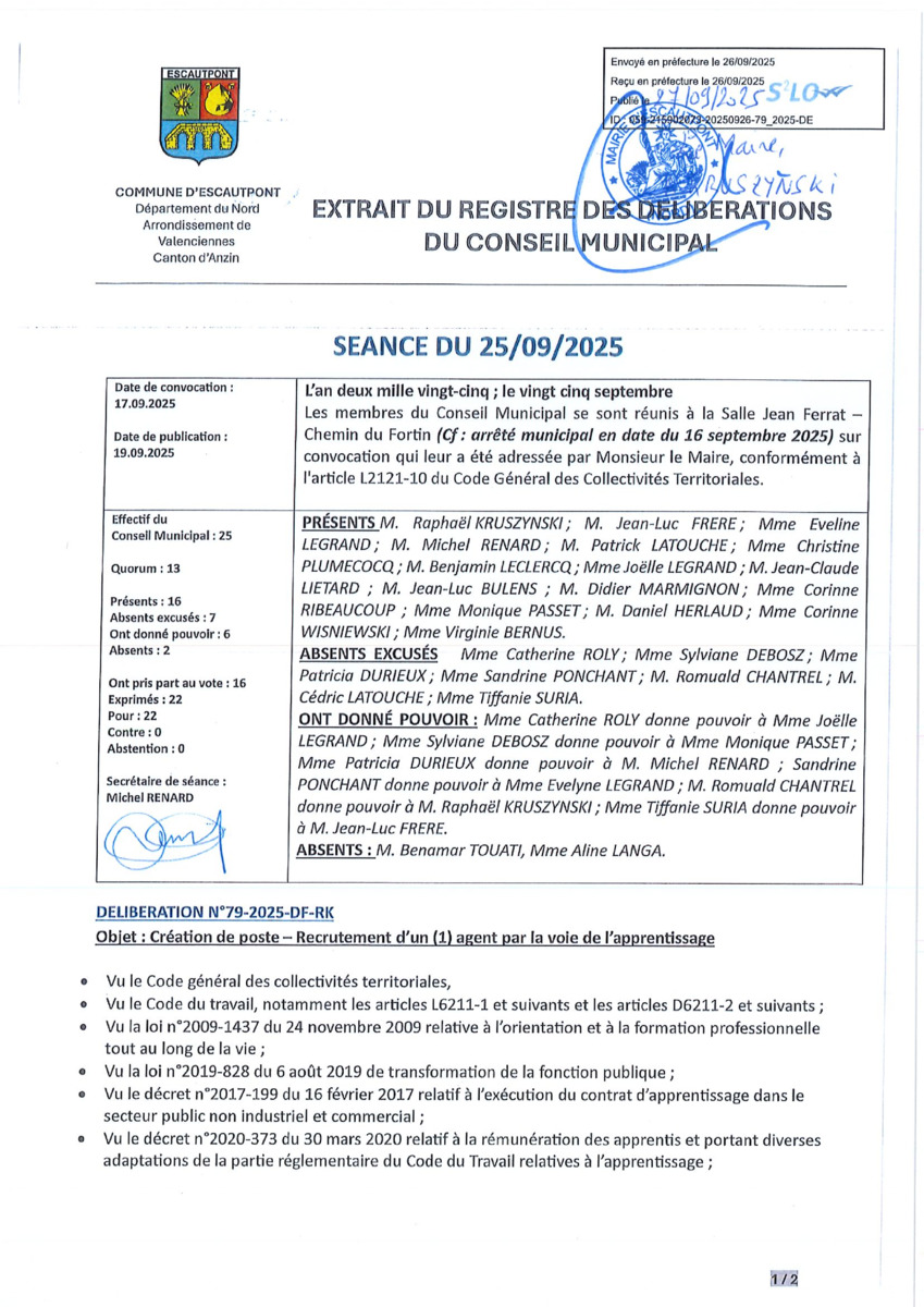 Délibérations du Conseil Municipal du 25 septembre 2025