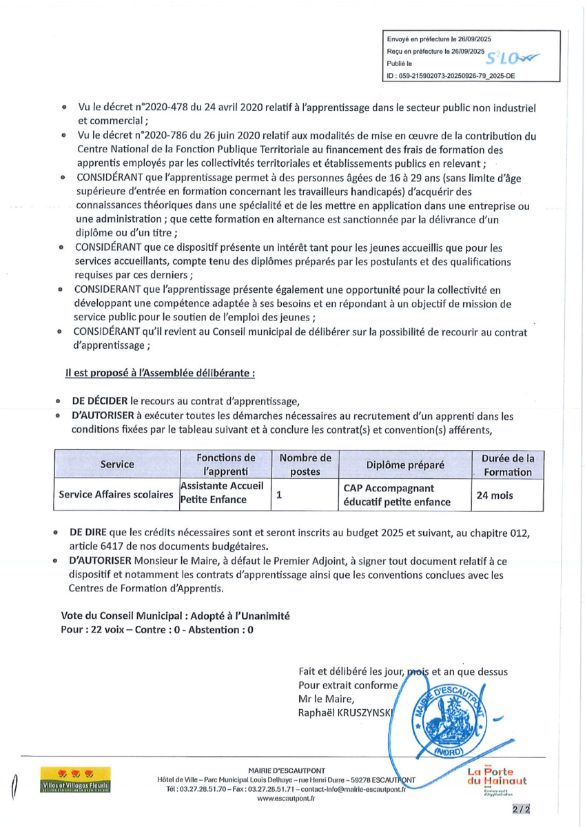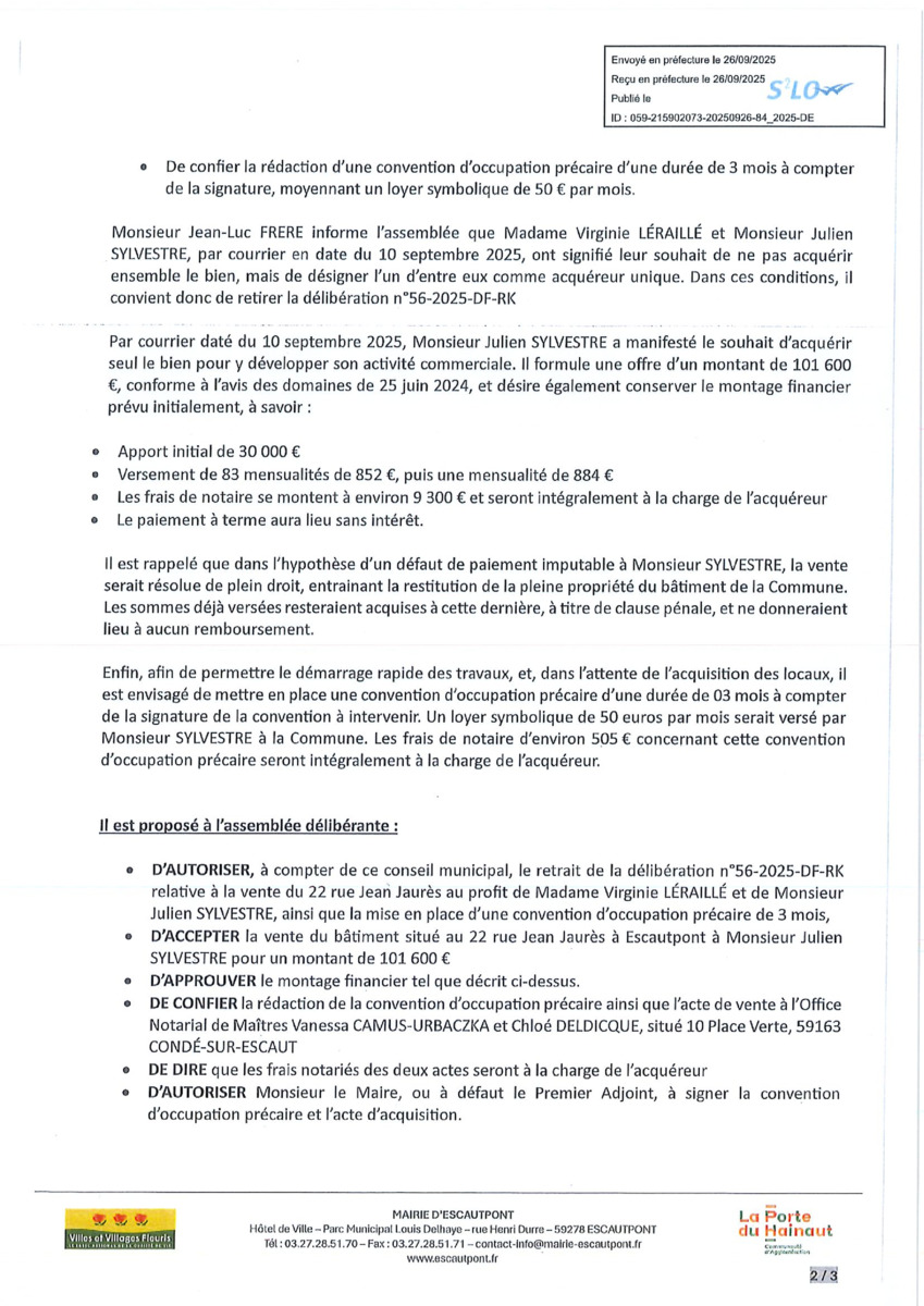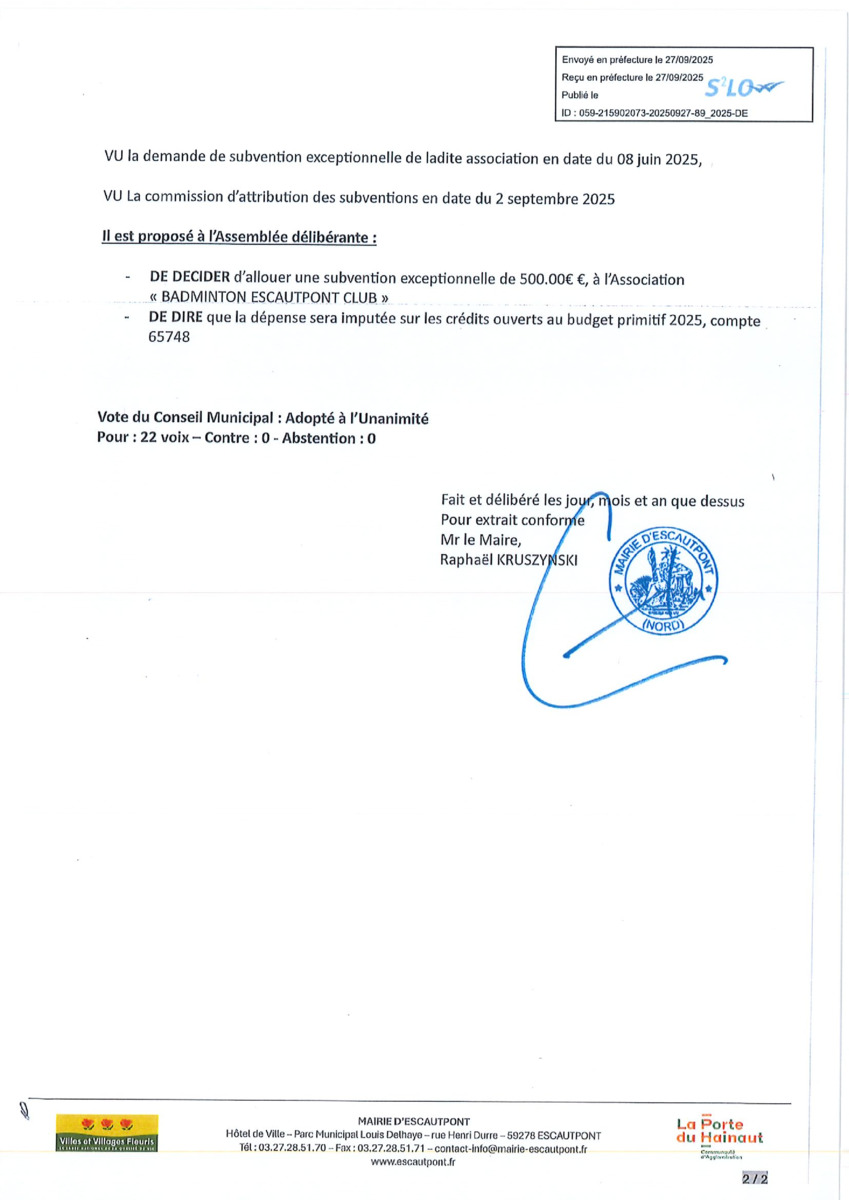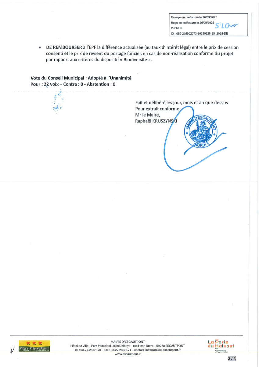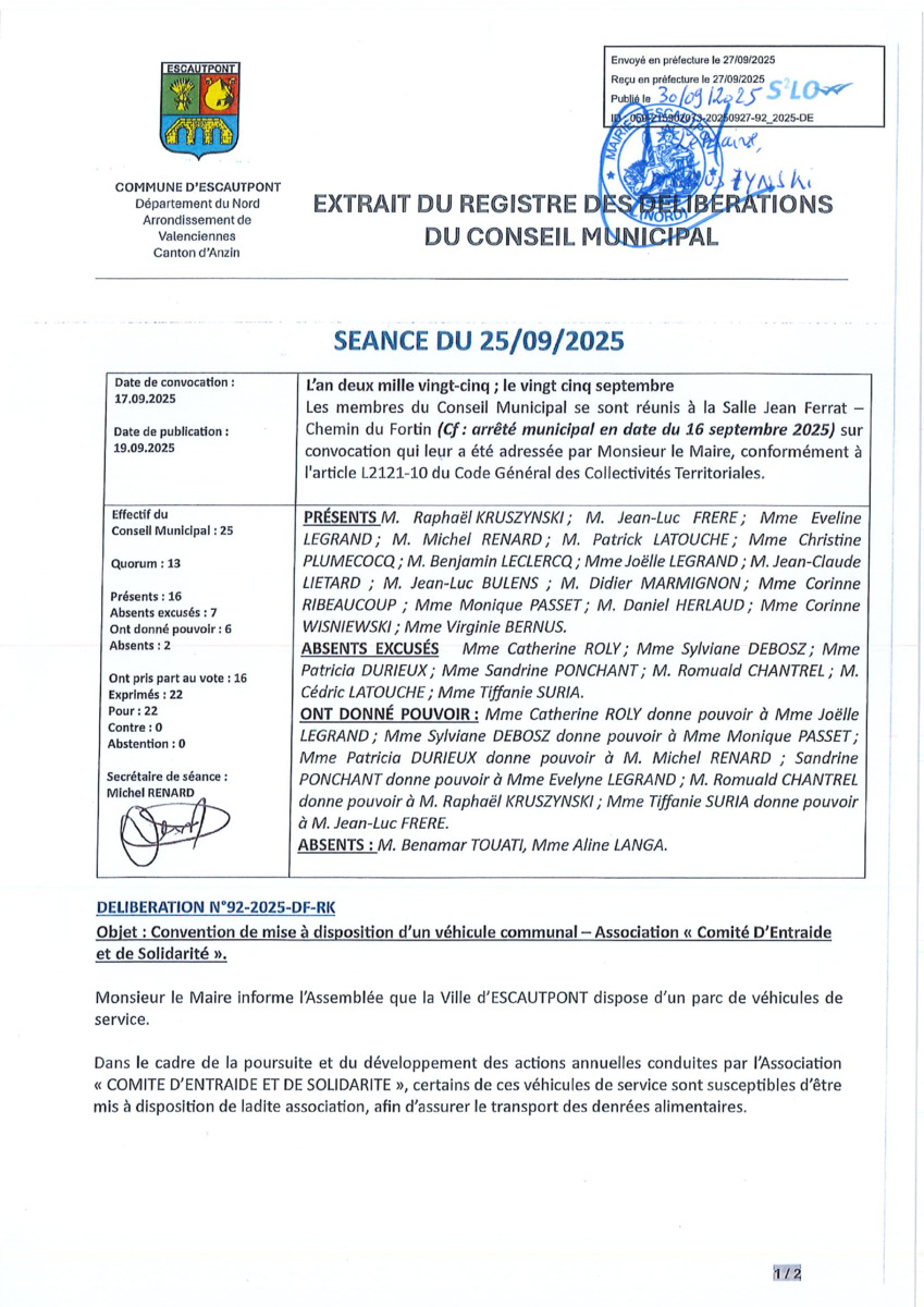 Délibérations du Conseil Municipal du 25 septembre 2025