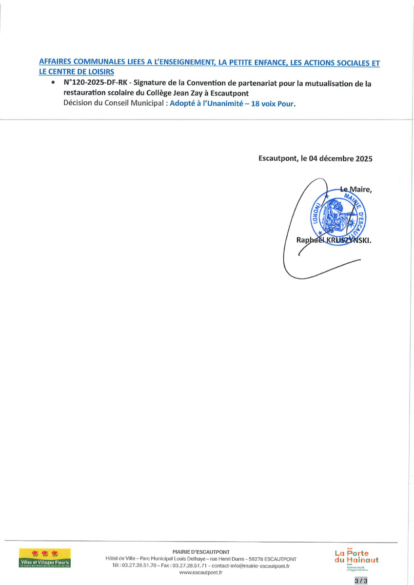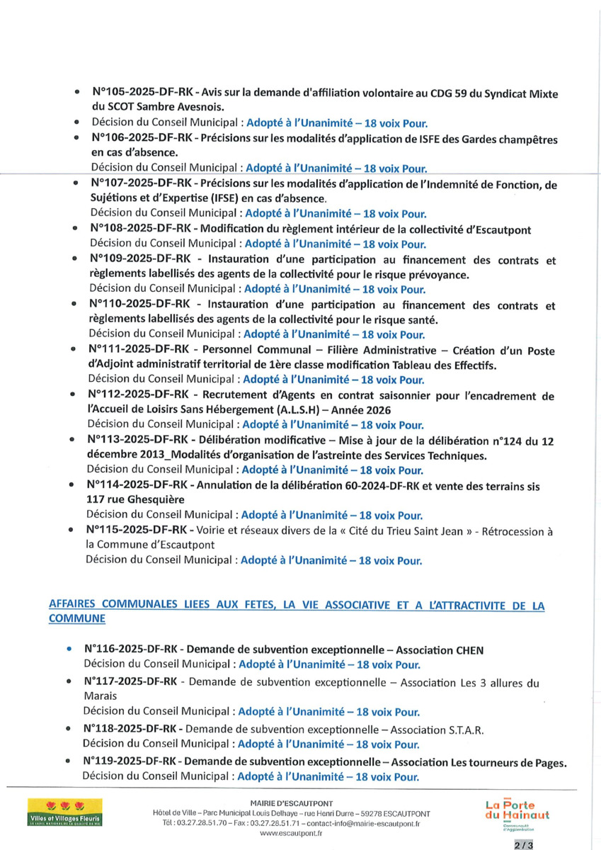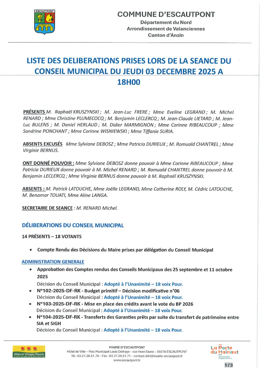 Liste des délibérations du Conseil Municipal du 3 décembre 2025