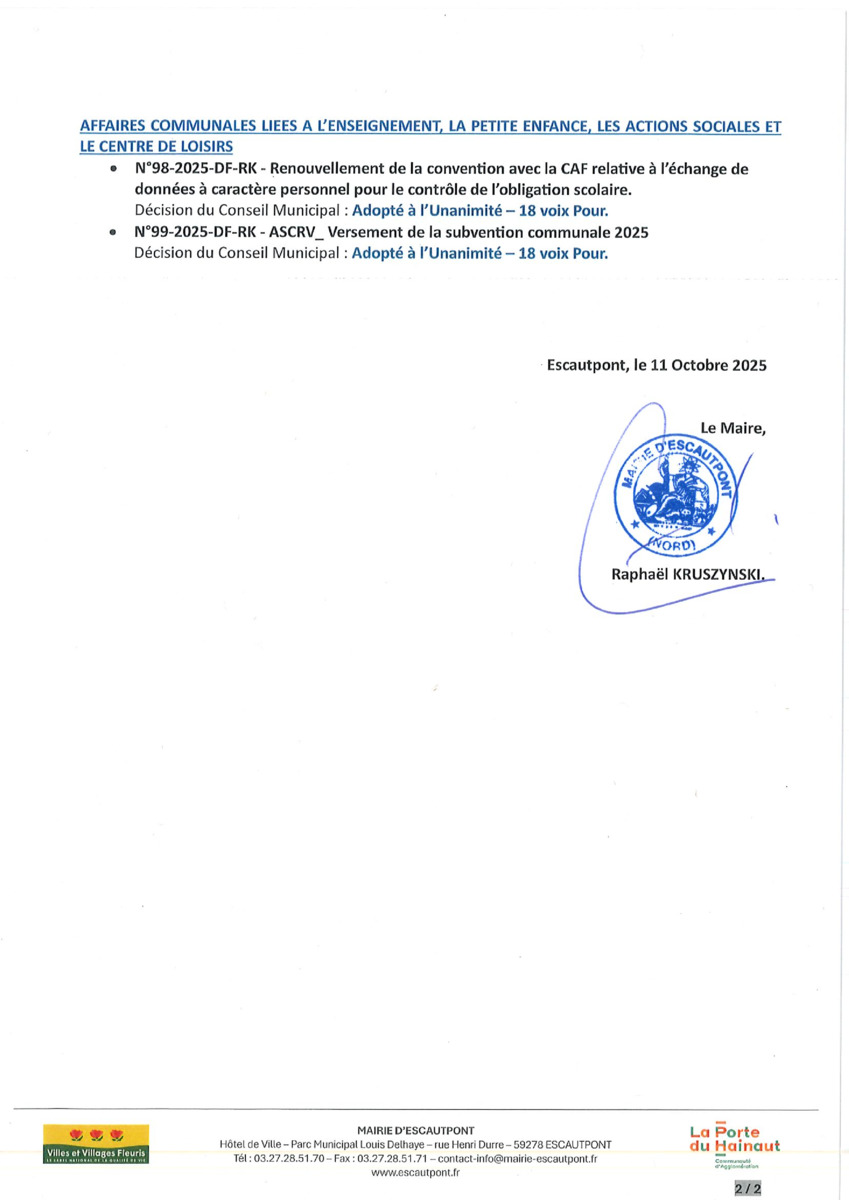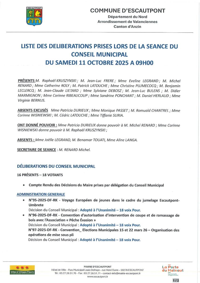Liste des délibérations du Conseil Municipal du 11 octobre 2025
