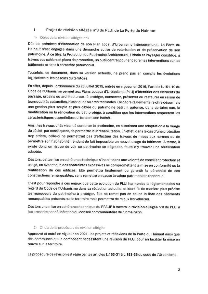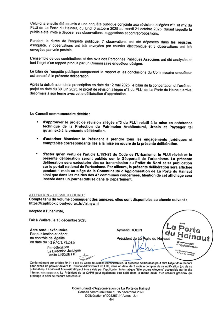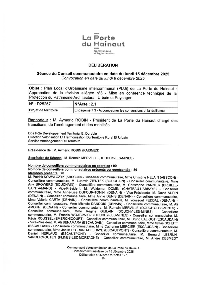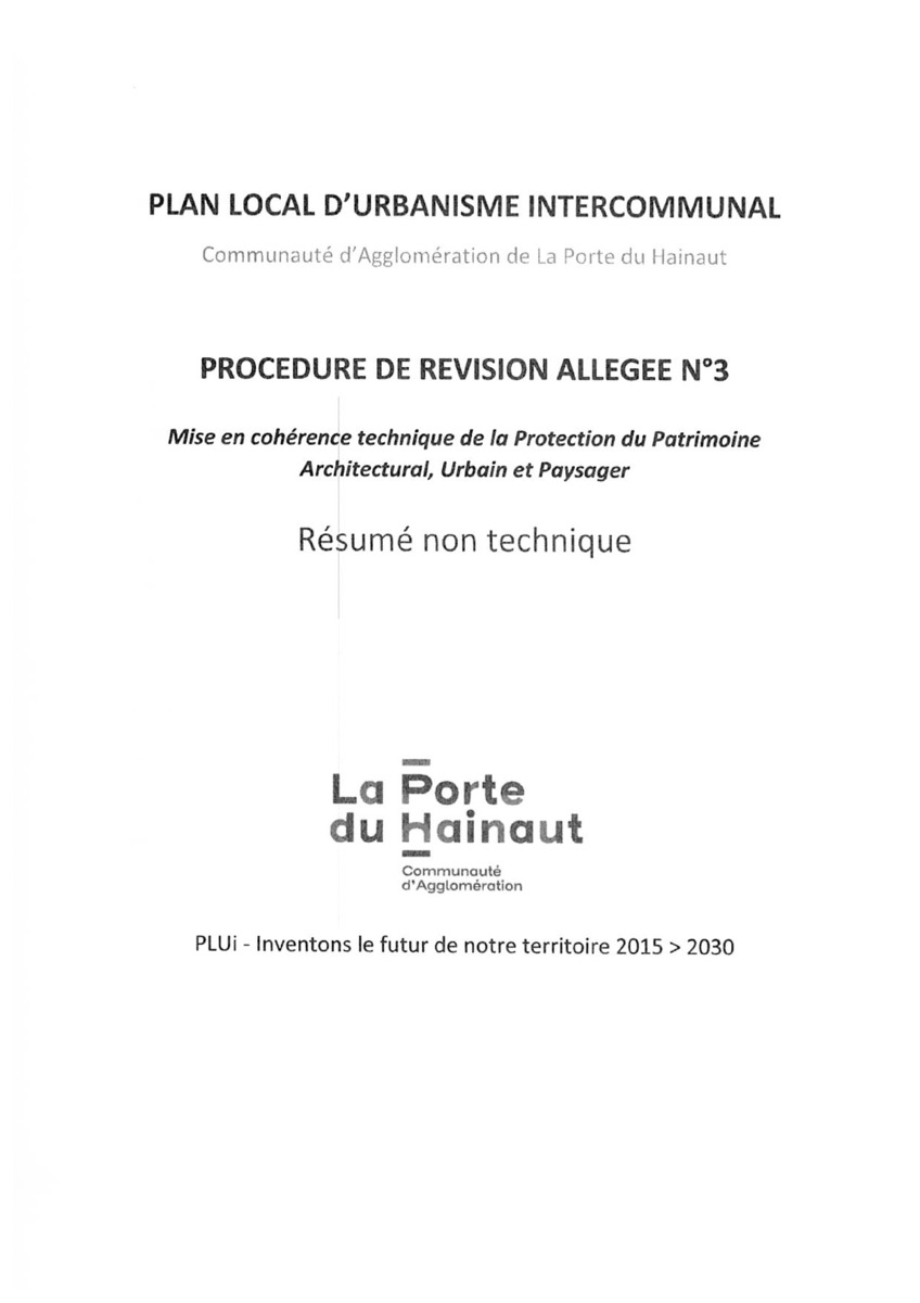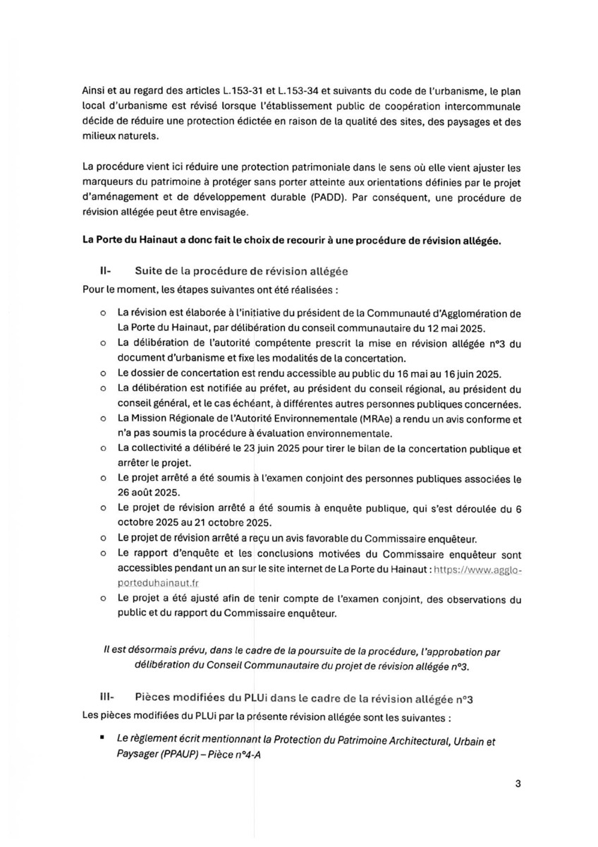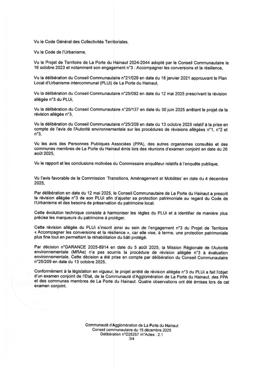 Plan Local d'Urbanisme intercommunal (PLUi) de la Porte du Hainaut Approbation de la révision allégée num 3 - Mise en c