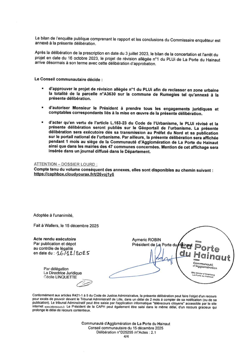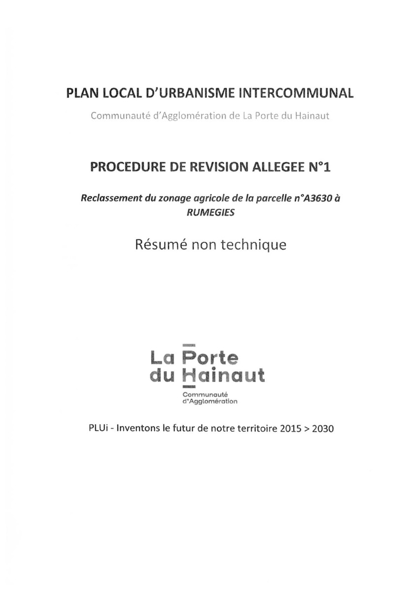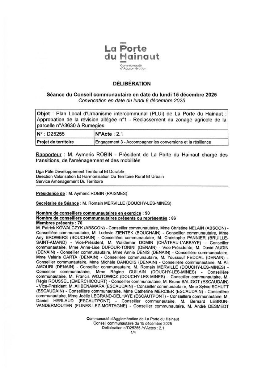 Plan Local d'Urbanisme intercommunal (PLUi) de la Porte du Hainaut Approbation de la révision allégée num 1 - Reclassem