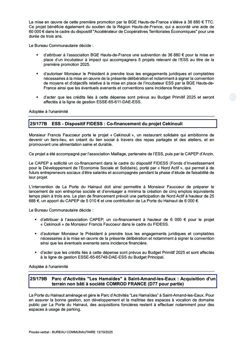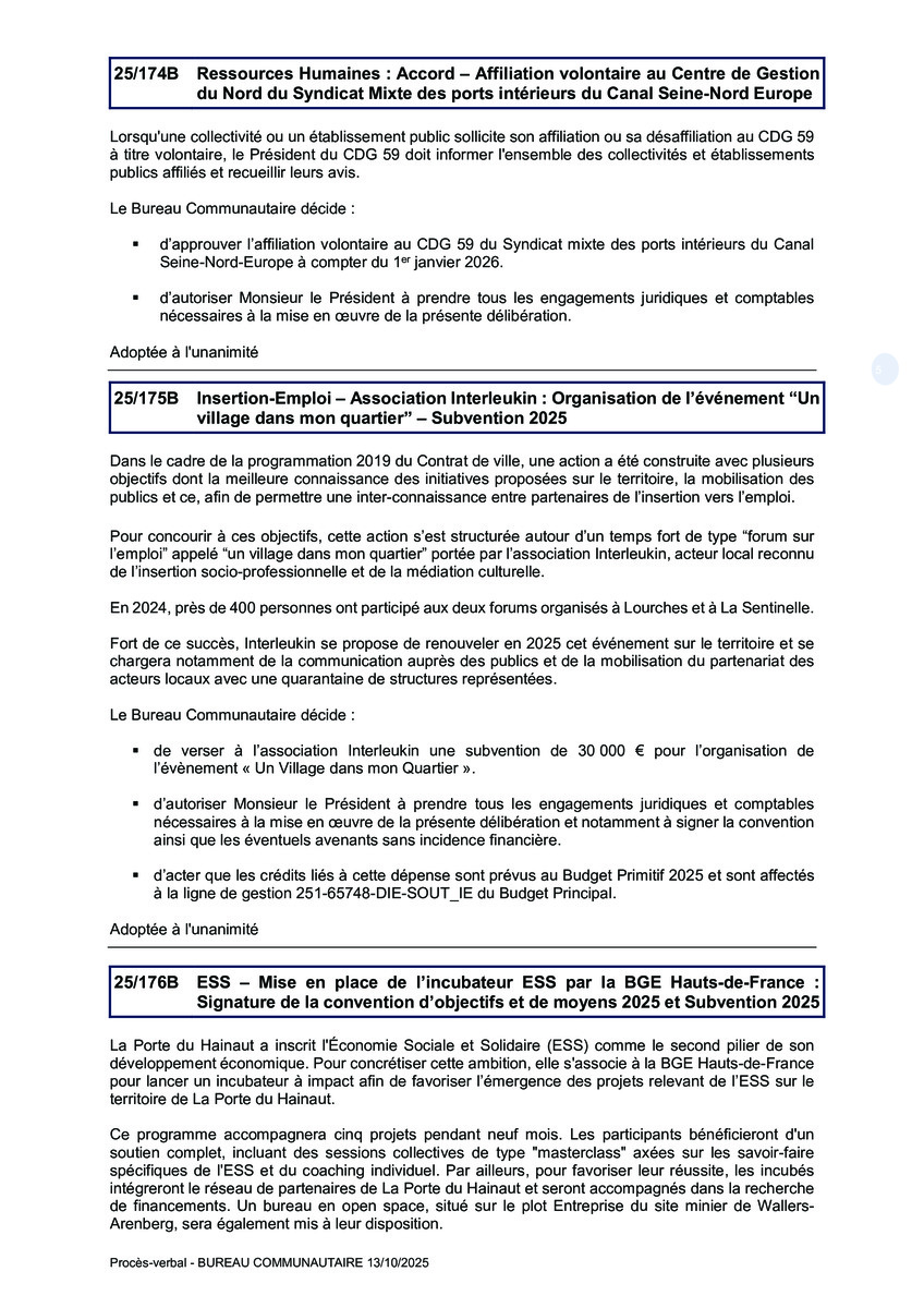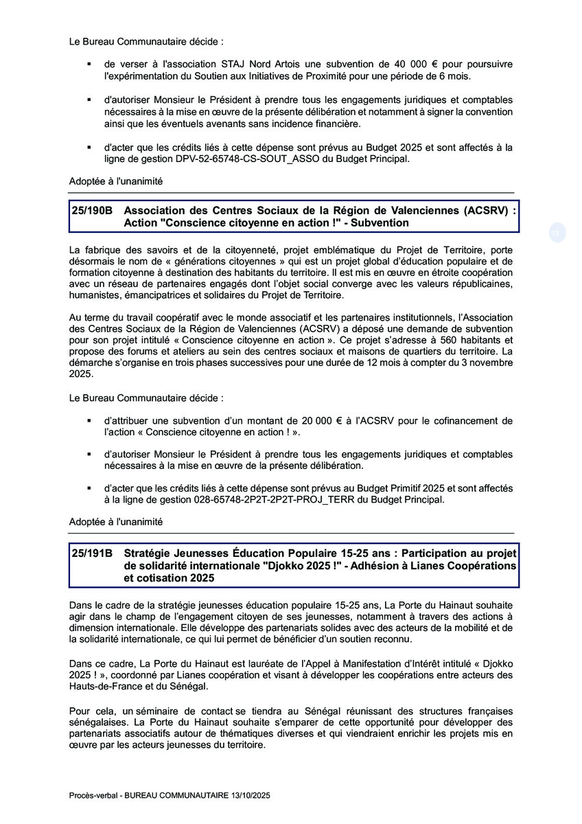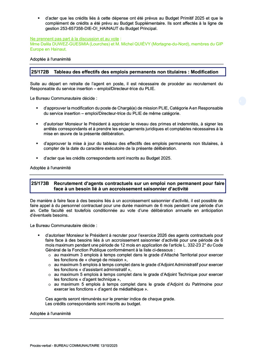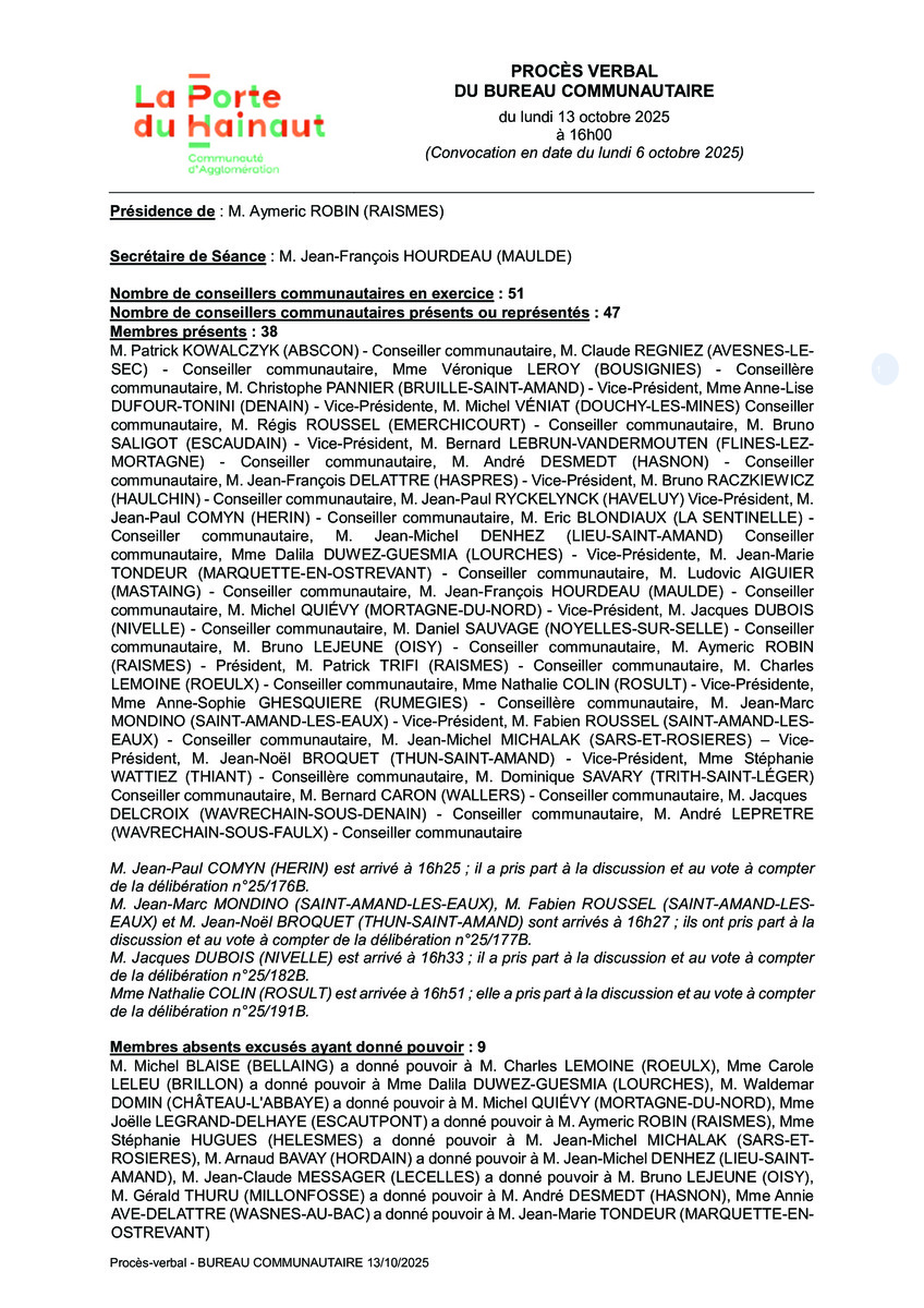 Procès verbal du bureau communautaire du 13 octobre 2025