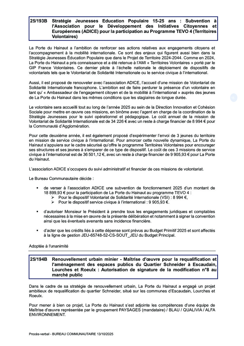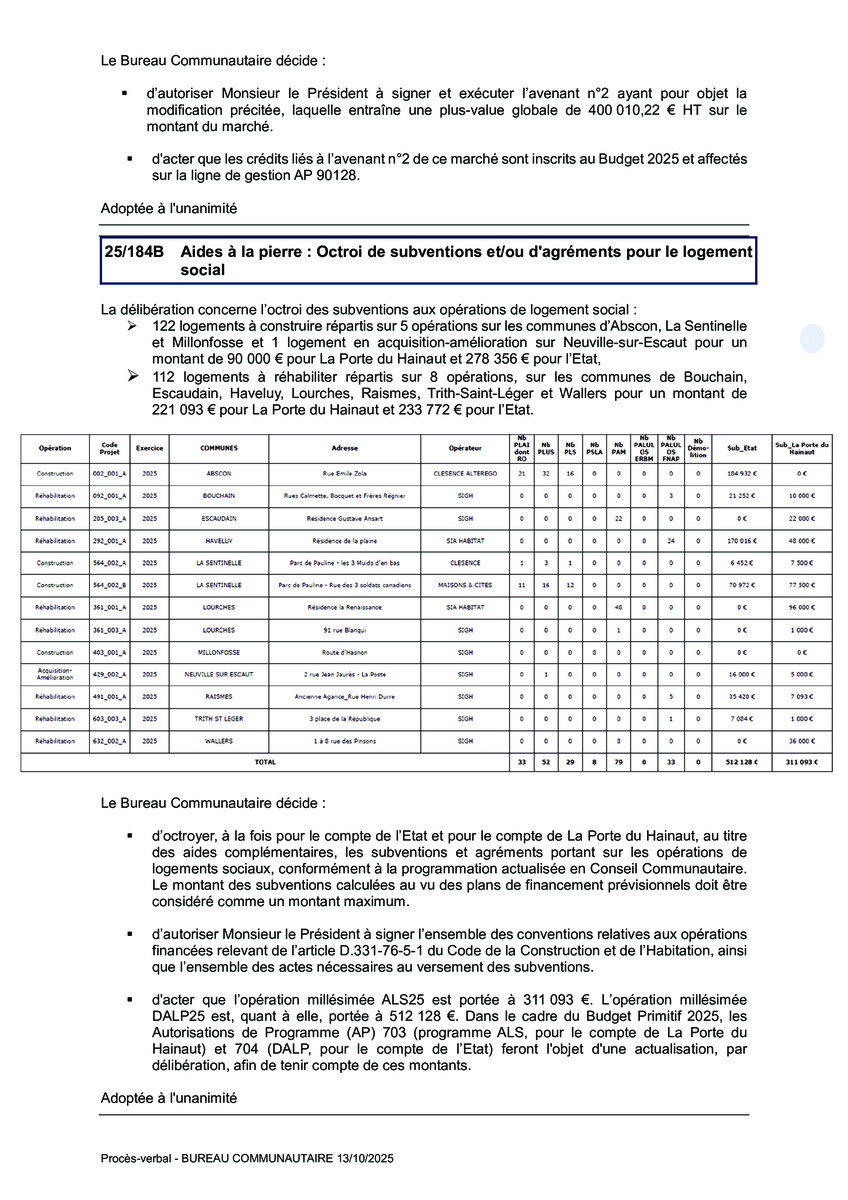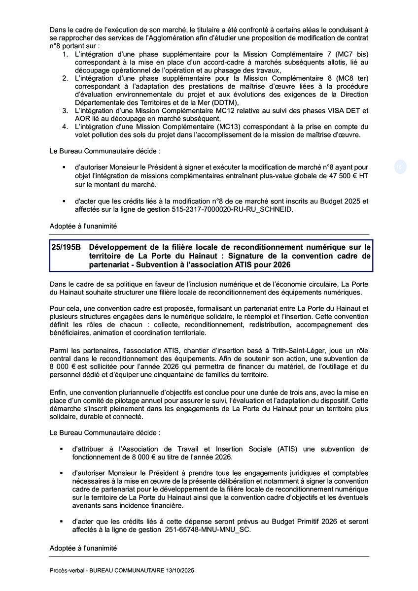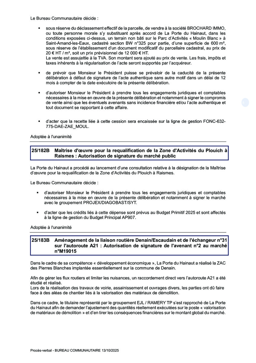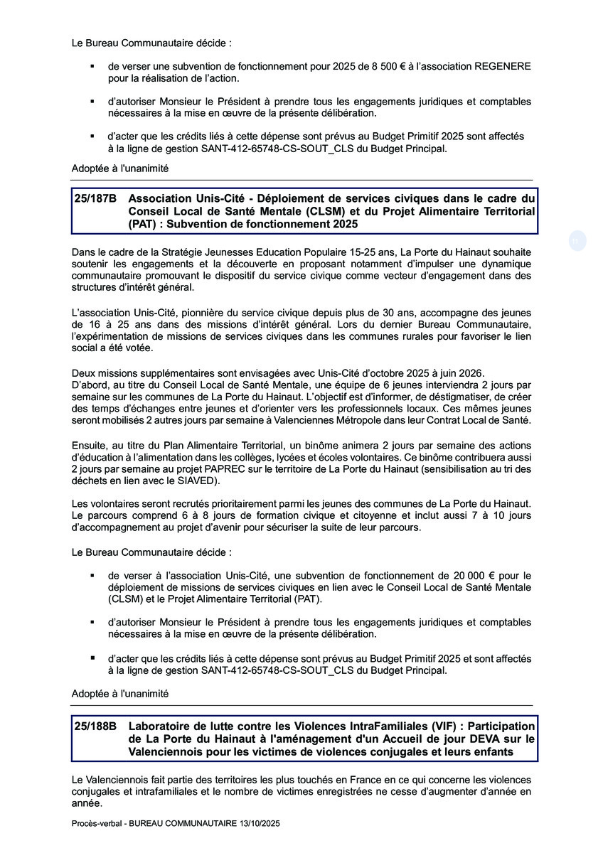 Procès verbal du bureau communautaire du 13 octobre 2025