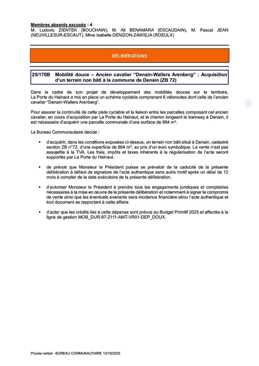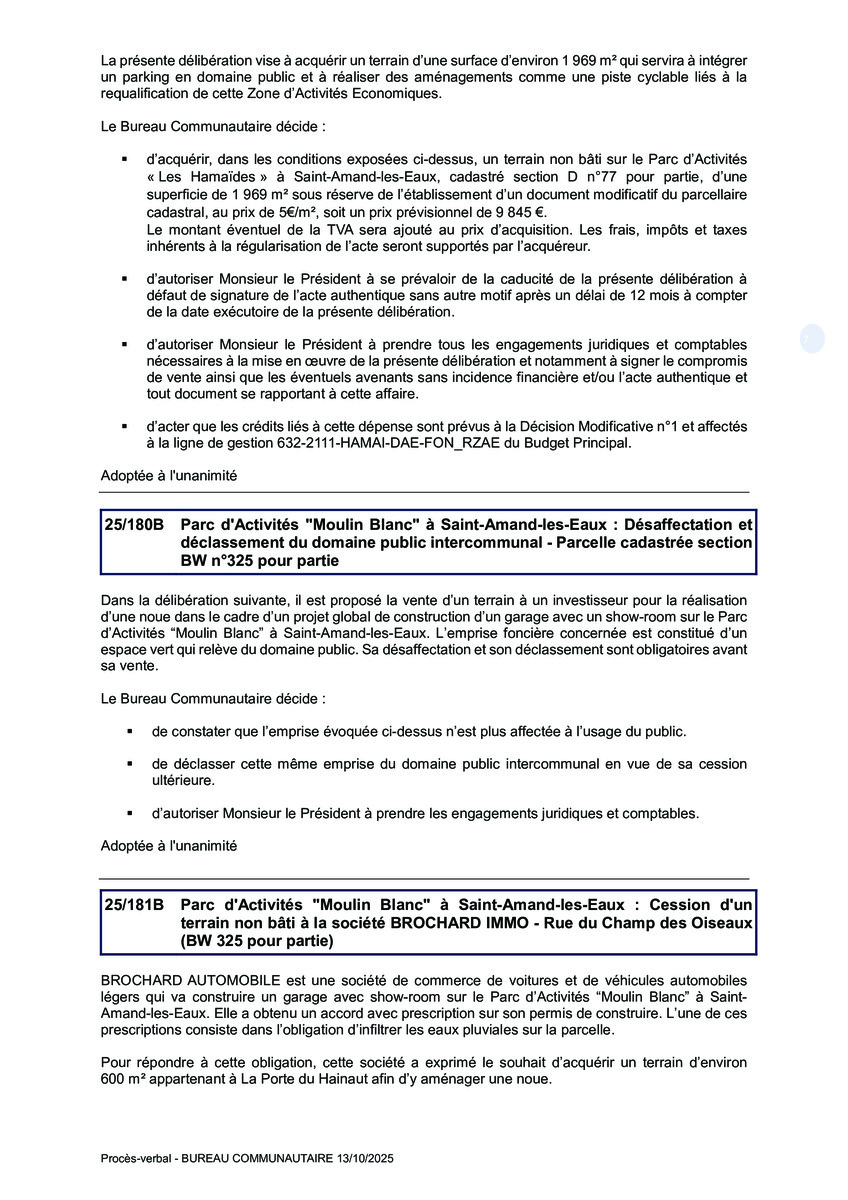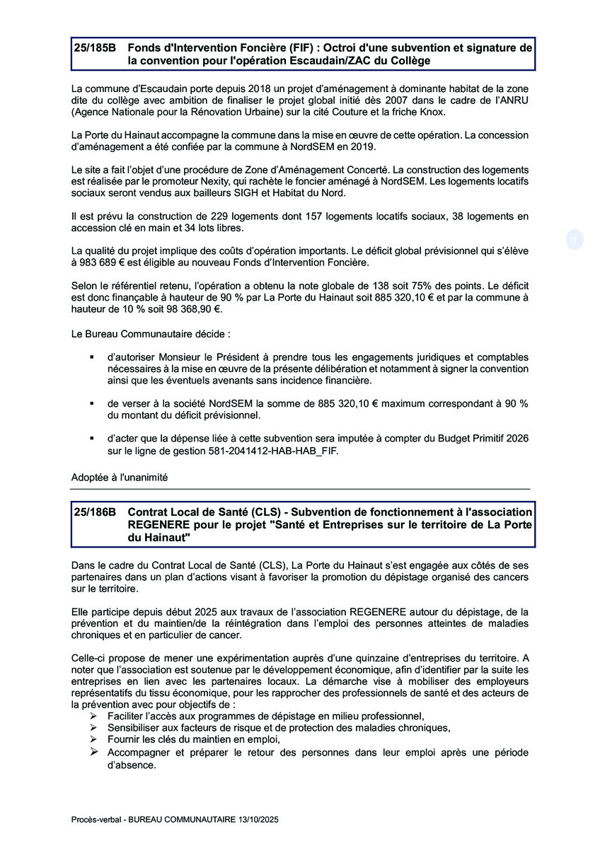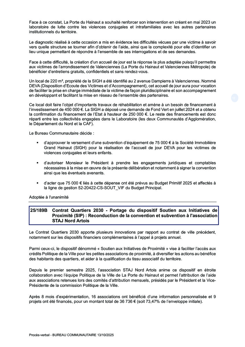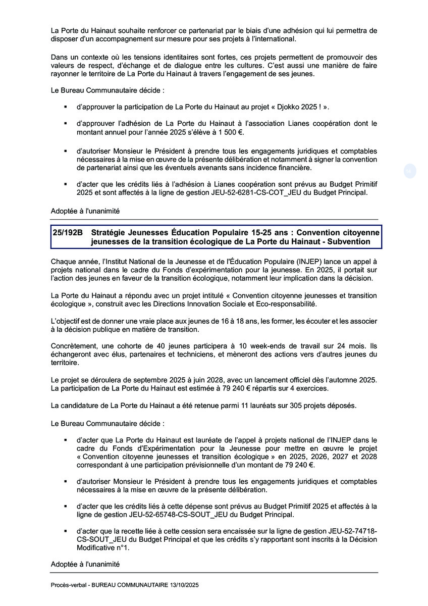 Procès verbal du bureau communautaire du 13 octobre 2025